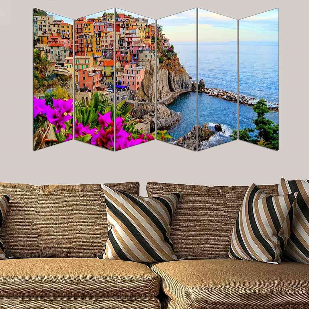 6 Parça Manarola Köyü Mdf Tablo - T-6Uv-058 100X60