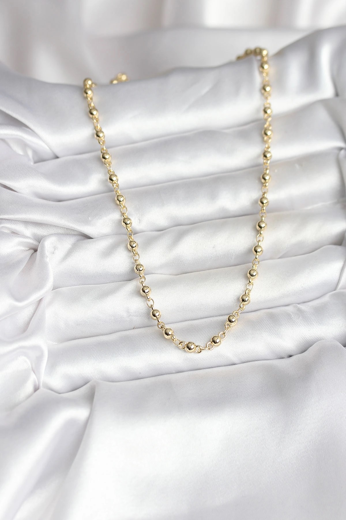 Mey İthalat® 14K Gold Renk Kaplama Topçuklu Zincir Model CM Kadın Kolye