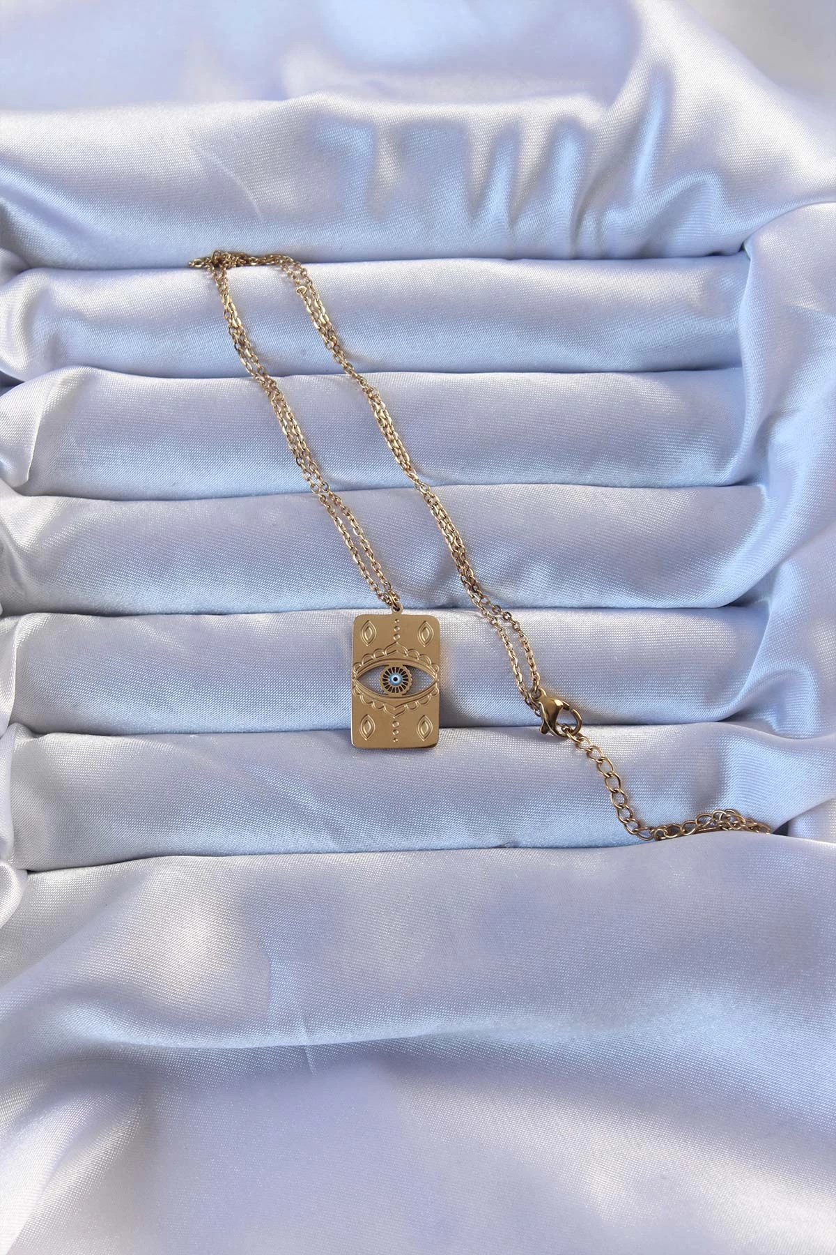 Mey İthalat® 316L Altın Renk İşlemeli Nazarlı Vintage Kolye