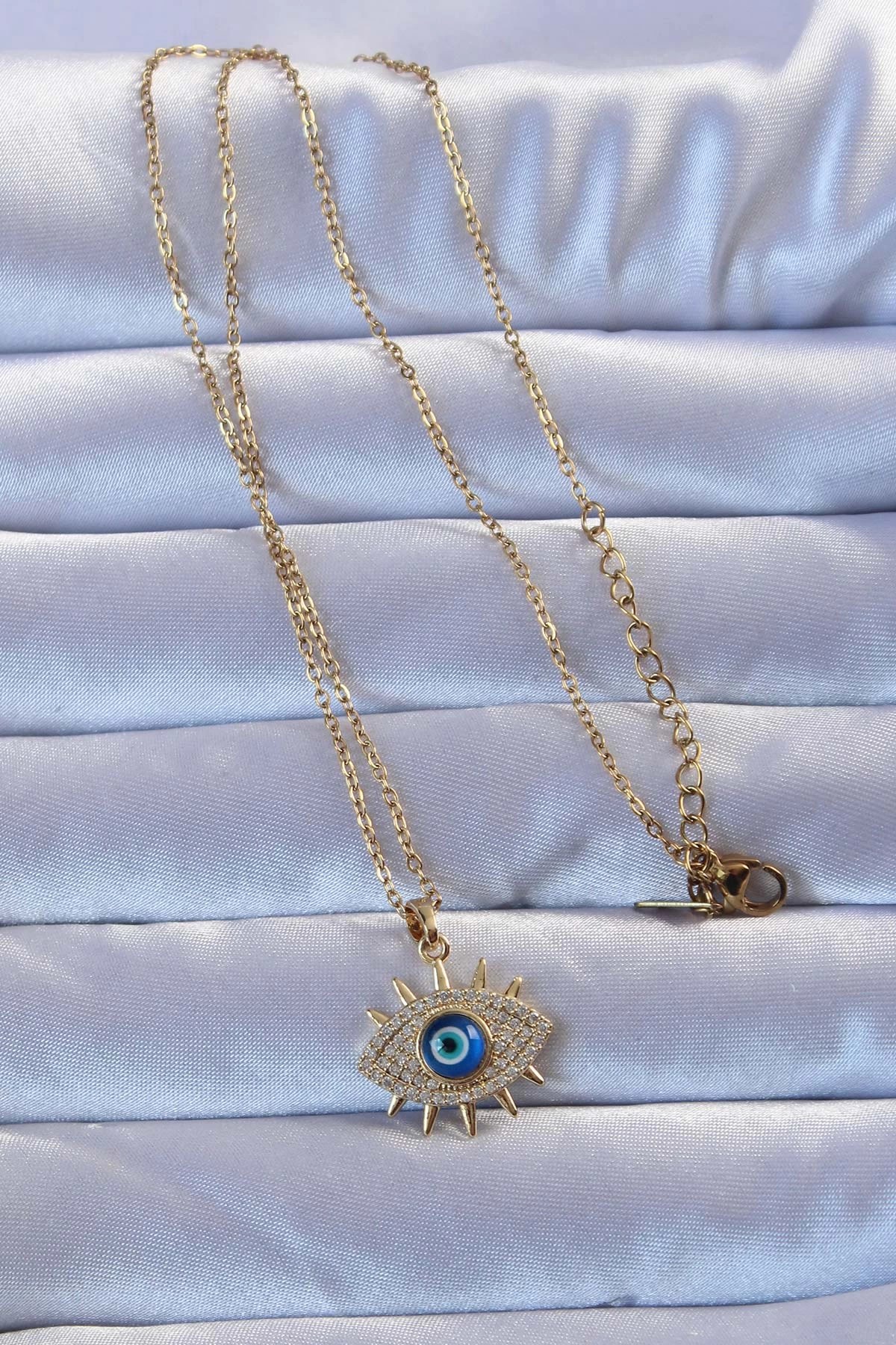 Mey İthalat® 316L Altın Renk Zirkon Taşlı Nazarlı Göz Kolye