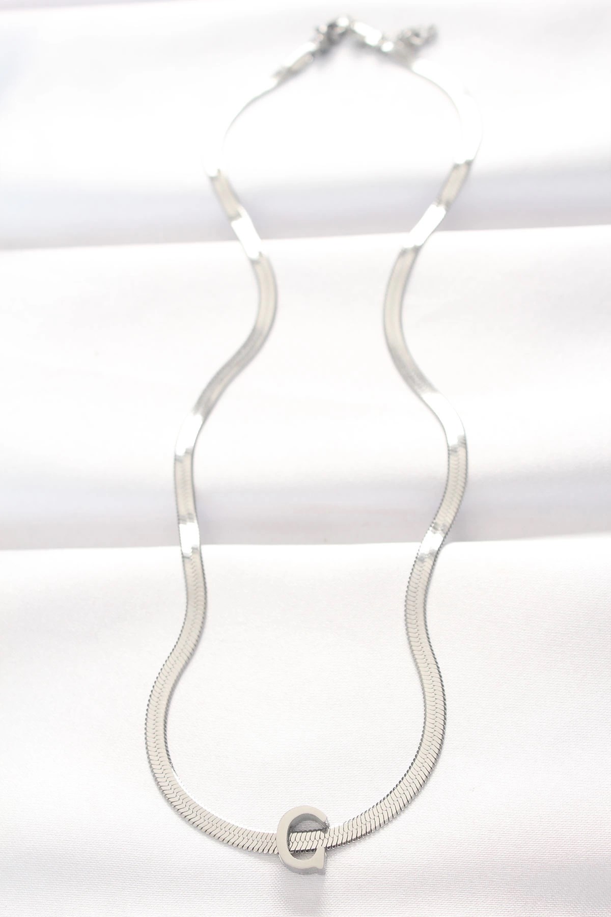 Mey İthalat® 316L Çelik C Harfli Silver Renk İtalyan Zincirli Kolye