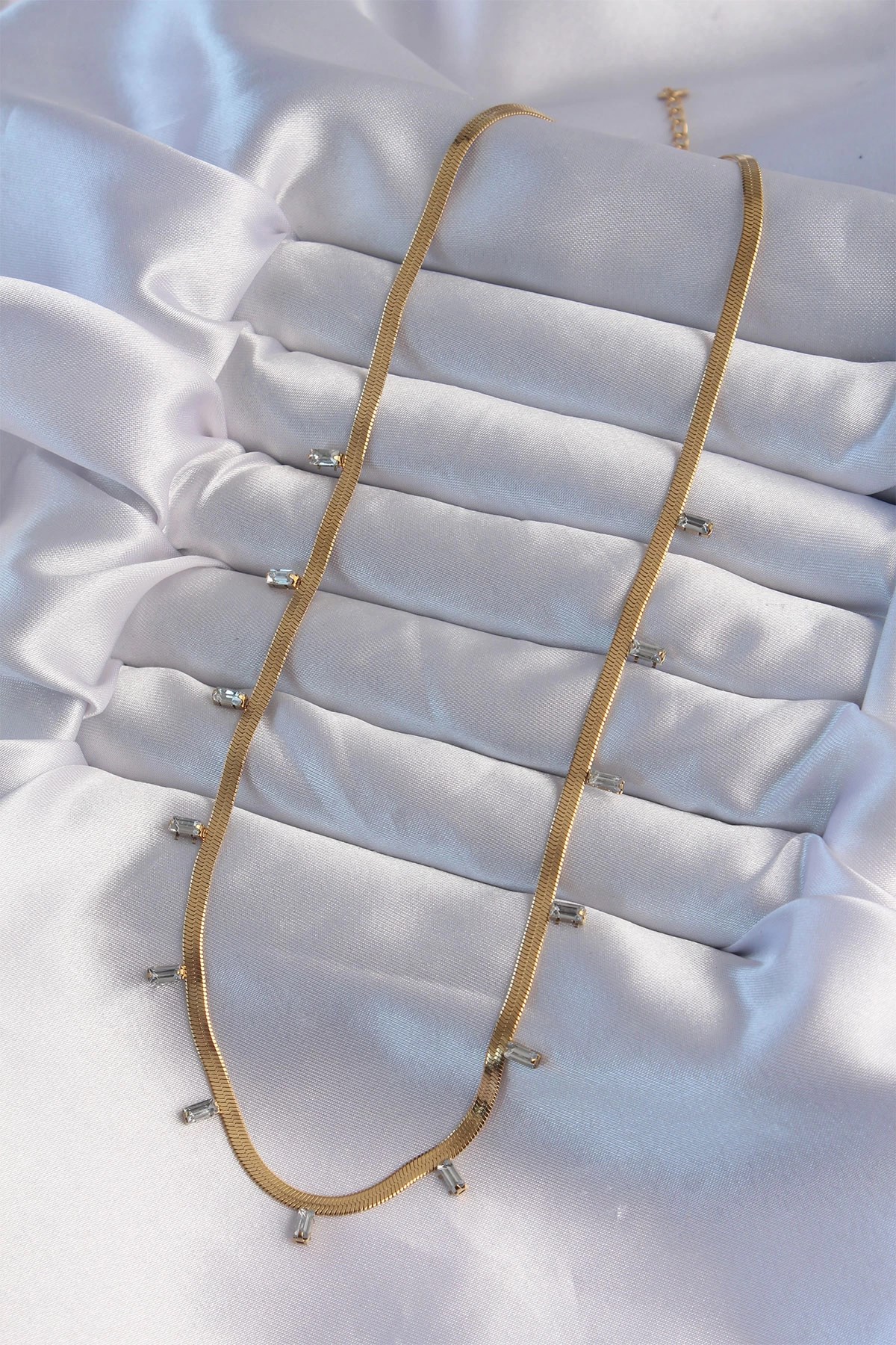 Mey İthalat® 316L Çelik Gold Renk Baget Taşlı İtalyan Zincir Kolye