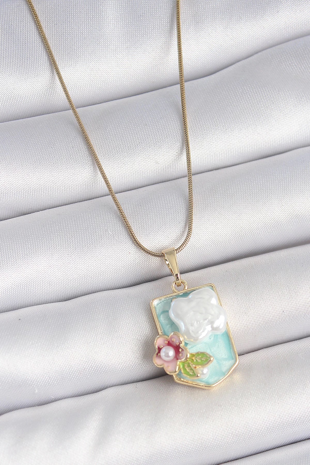 Mey İthalat® 316L Çelik Gold Renk Beyaz Mineli Kız Figür Tarot Kolye