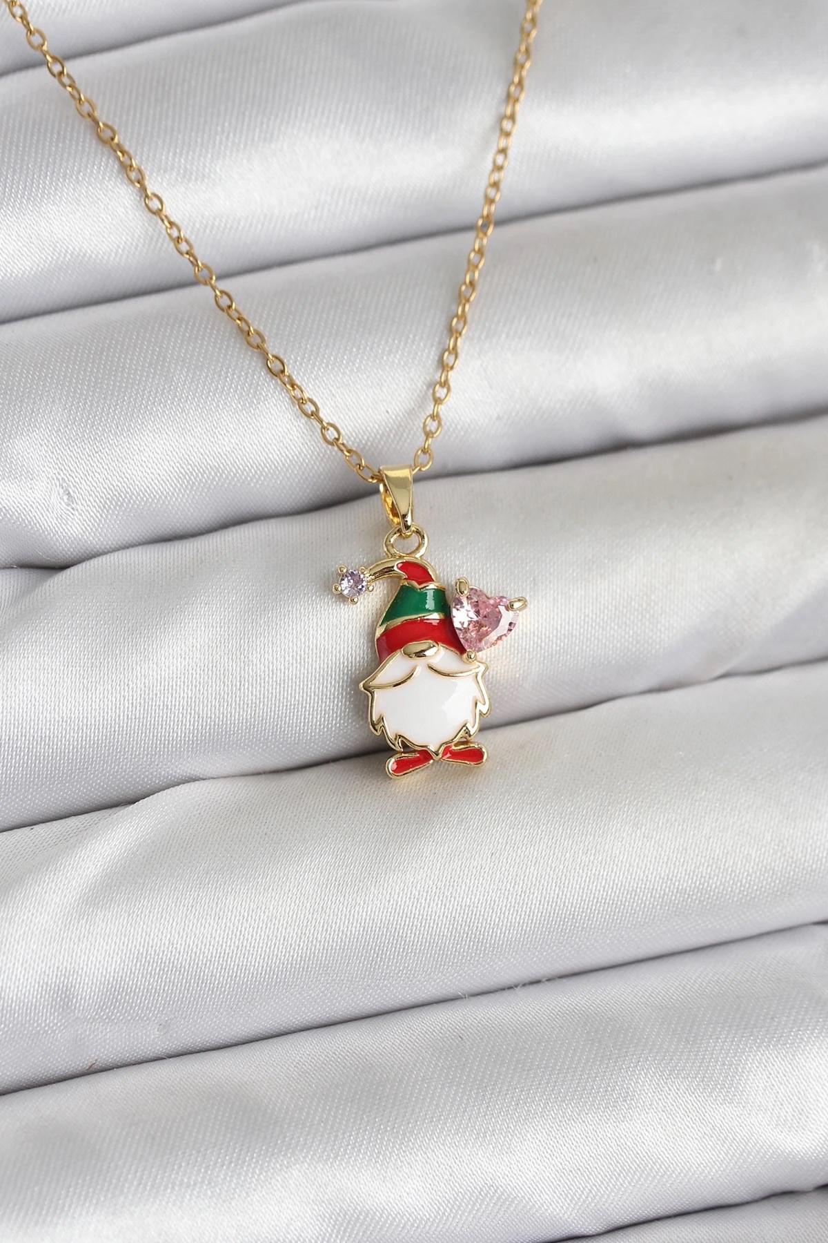 Mey İthalat® 316L Çelik Gold Renk Beyaz Mineli Tarot Kolye