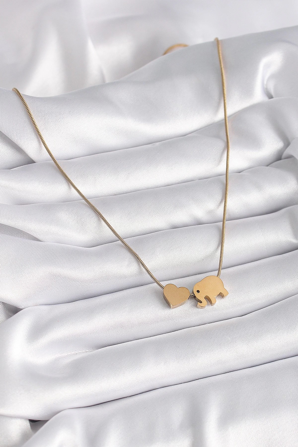 Mey İthalat® 316L Çelik Gold Renk Fil Kalp Figürlü Kadın Kolye