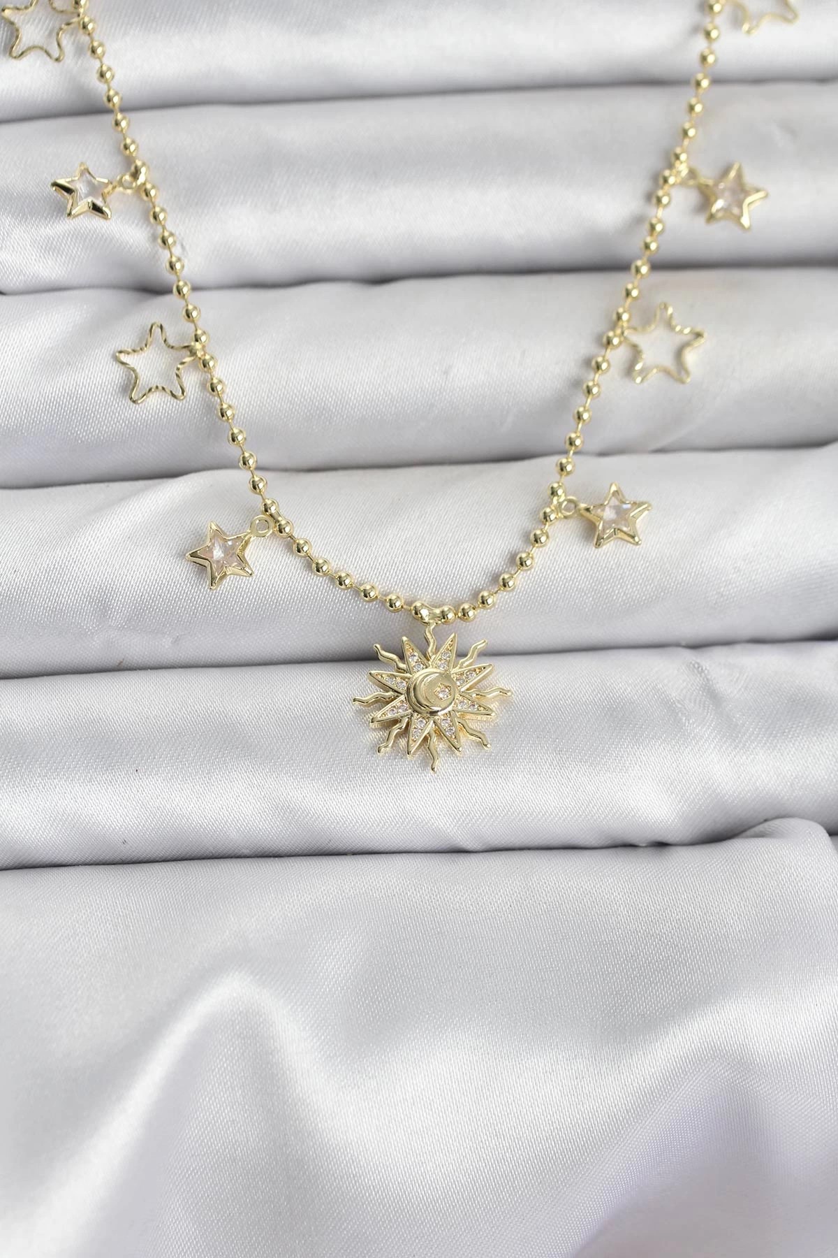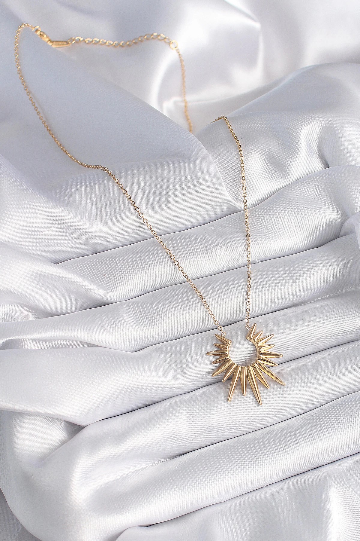 Mey İthalat® 316L Çelik Gold Renk Güneş Model Vintage Kadın Kolye