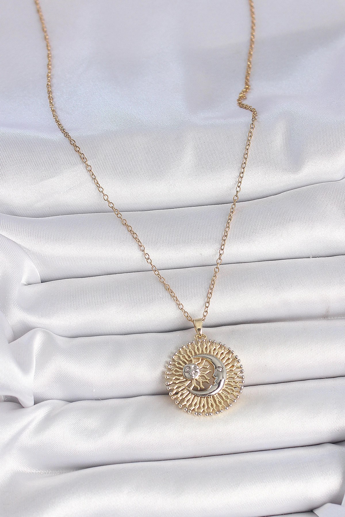 Mey İthalat® 316L Çelik Gold Renk Mix Renk Ay Güneş Model Kadın Kolye