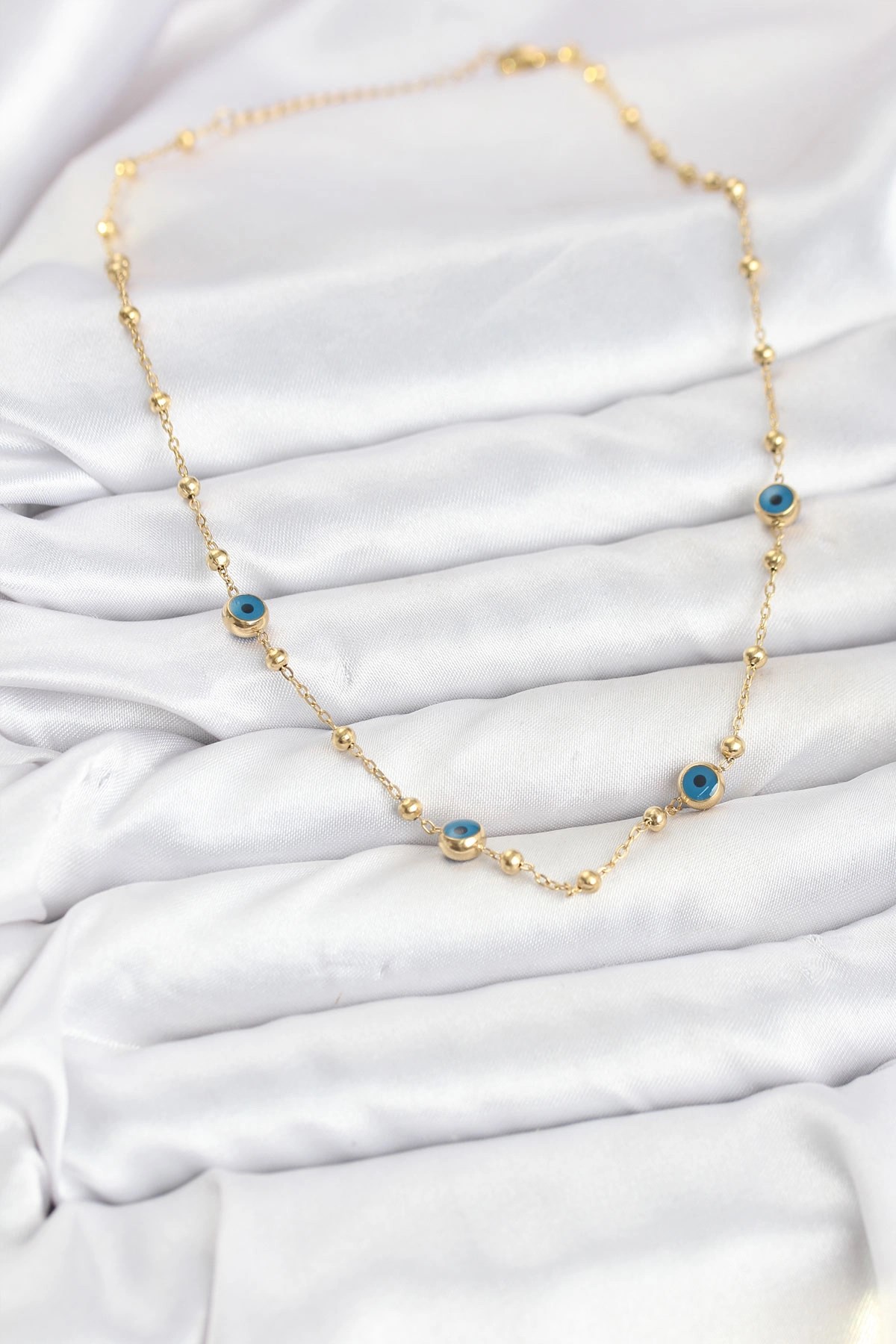Mey İthalat® 316L Çelik Gold Renk Nazarlı ve Topçuklu Model Kadın Kolye