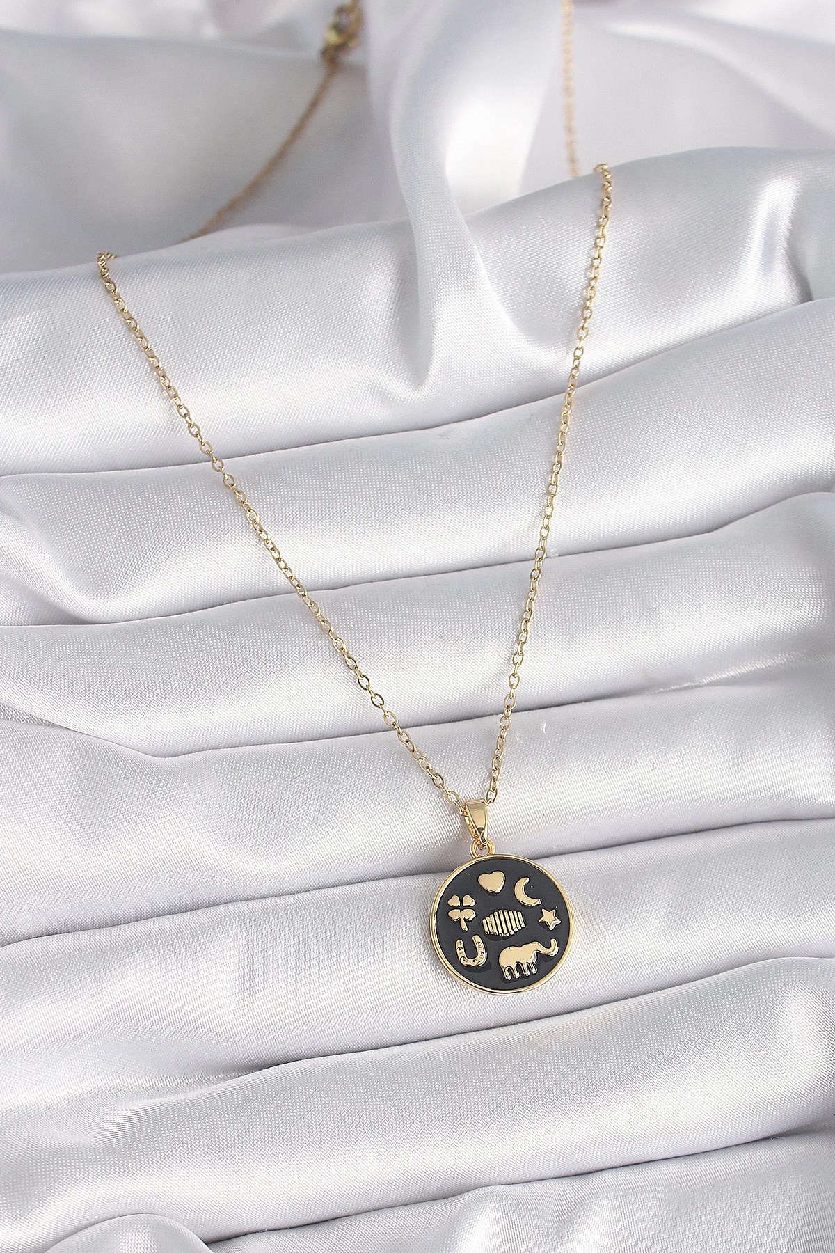 Mey İthalat® 316L Çelik Gold Renk Siyah Şans Kolyesi