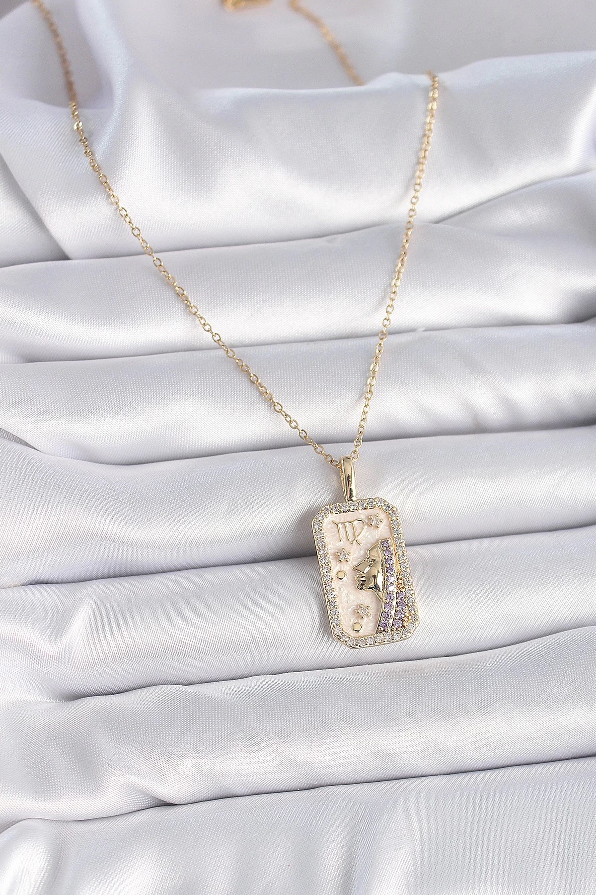 Mey İthalat® 316L Çelik Gold Renk Zincir Başak Burcu Zirkon Taşlı Kadın Kolye