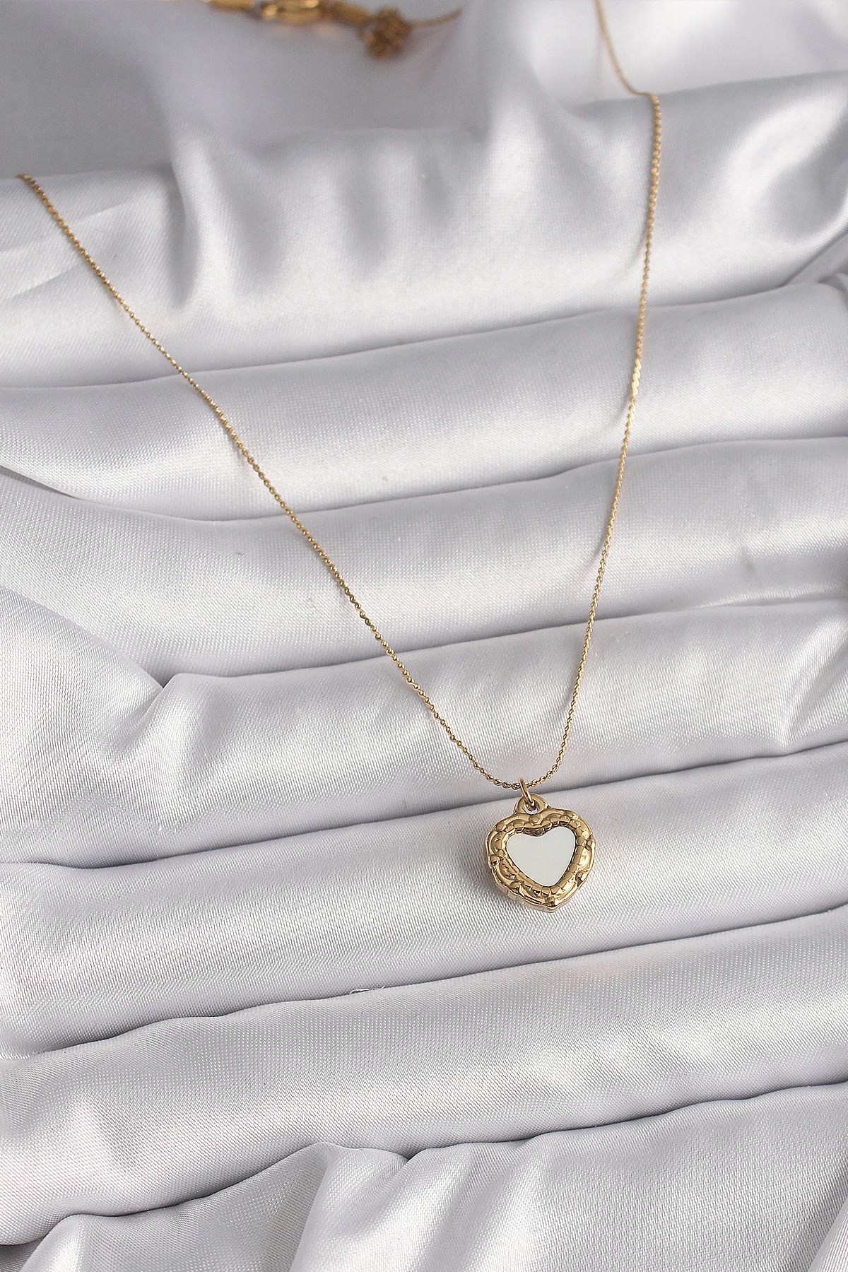 Mey İthalat® 316L Çelik Gold Renk Zincir Sedefli Kalp Model Kadın Kolye