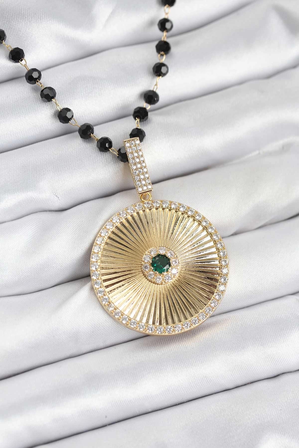 Mey İthalat® 316L Çelik Gold Renk Zincir Zirkon Taş İşlemeli Hilal Yıldız İşlemeli Madalyon Model Kadın Kolye