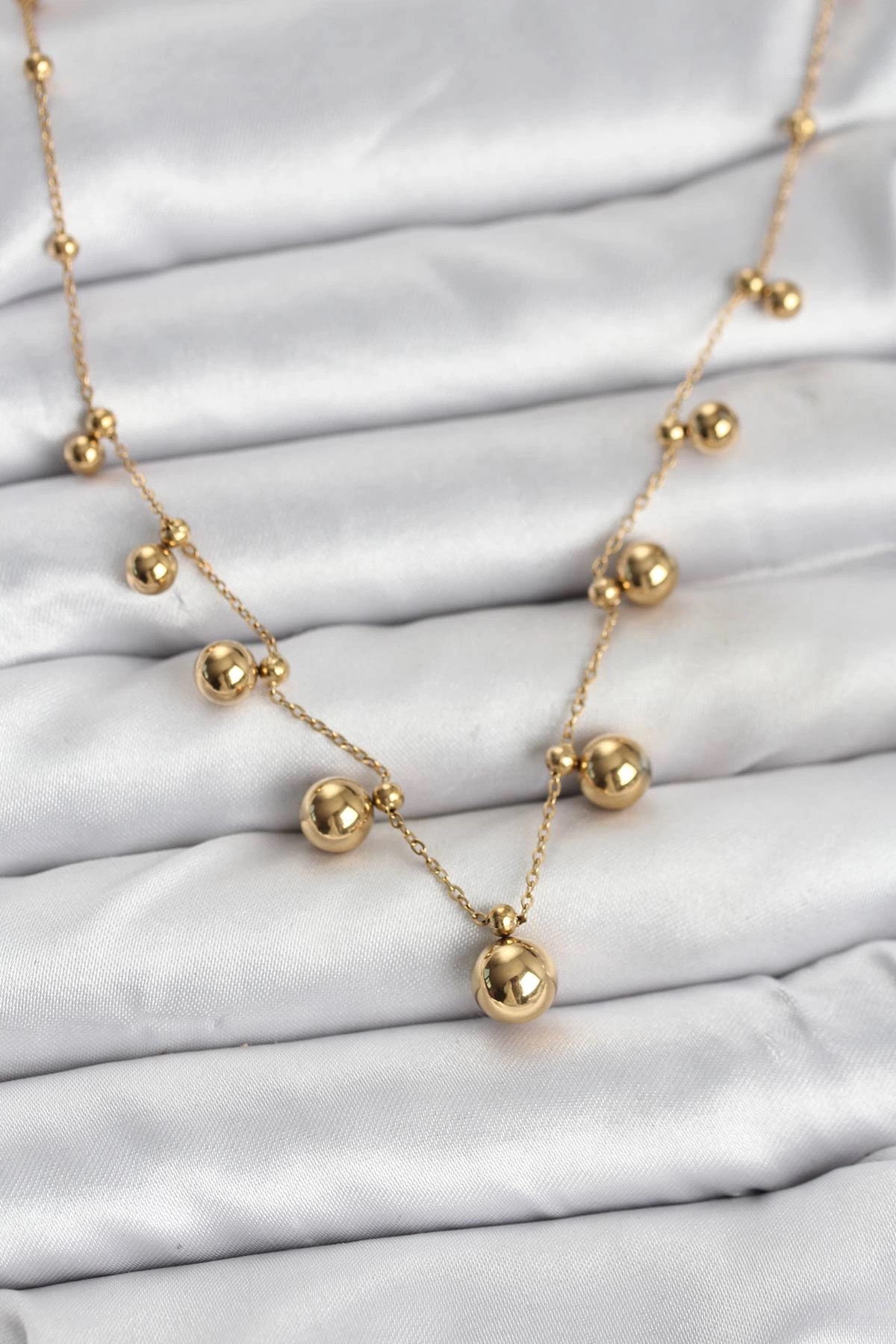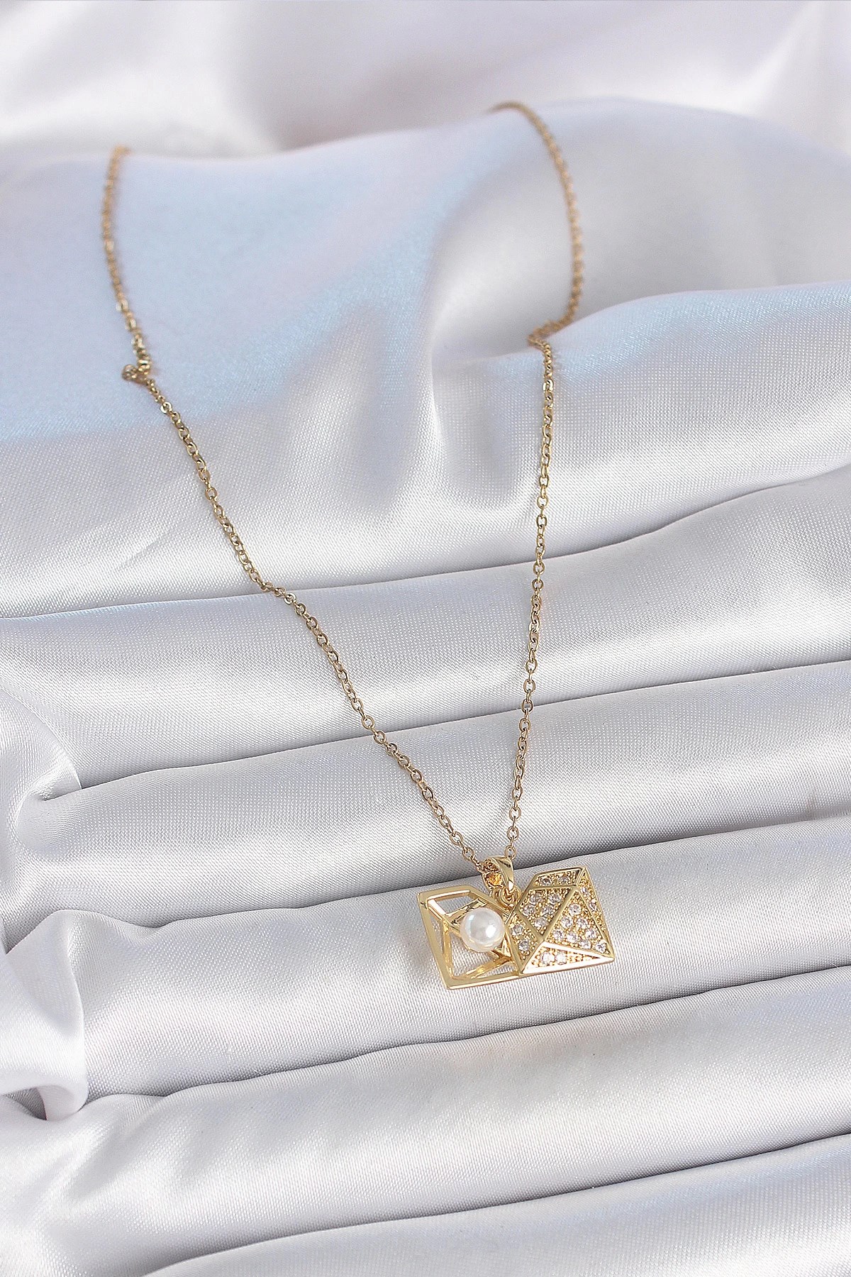 Mey İthalat® 316L Çelik Gold Renk Zincir Zirkon Taşlı Açılır İncili Elmas Model Kadın Kolye