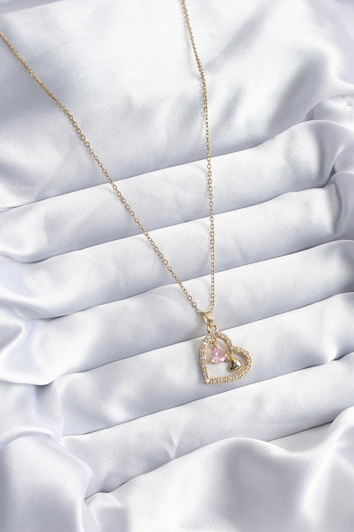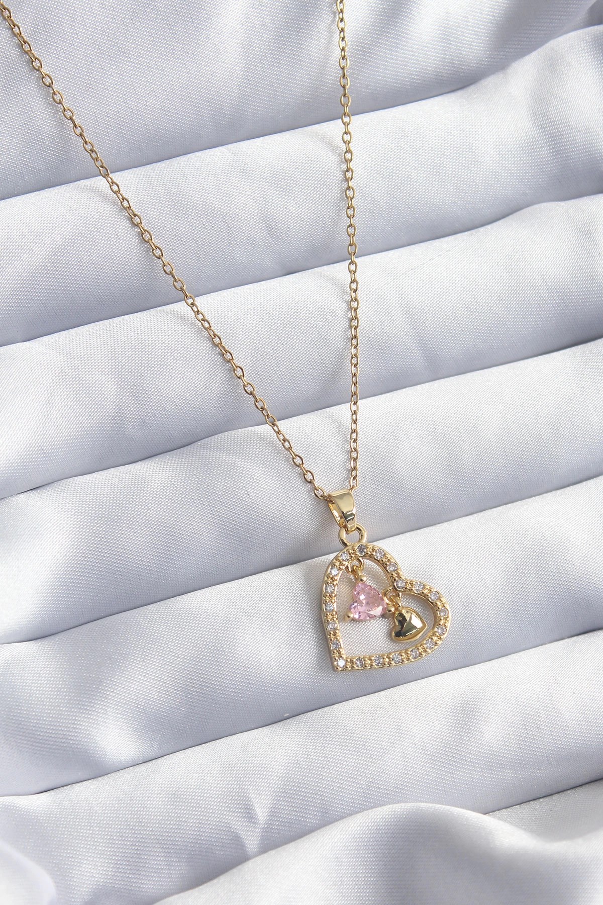 Mey İthalat® 316L Çelik Gold Renk Zincir Zirkon Taşlı Kalp Model Kadın Kolye