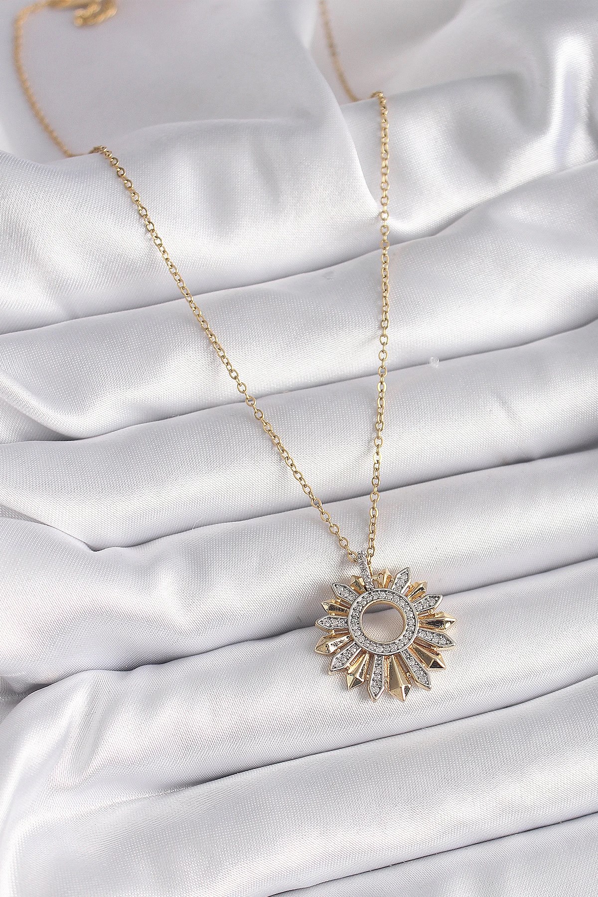 Mey İthalat® 316L Çelik Gold Renk Zincir Zirkon Taşlı Mix Renk Güneş Model Kadın Kolye