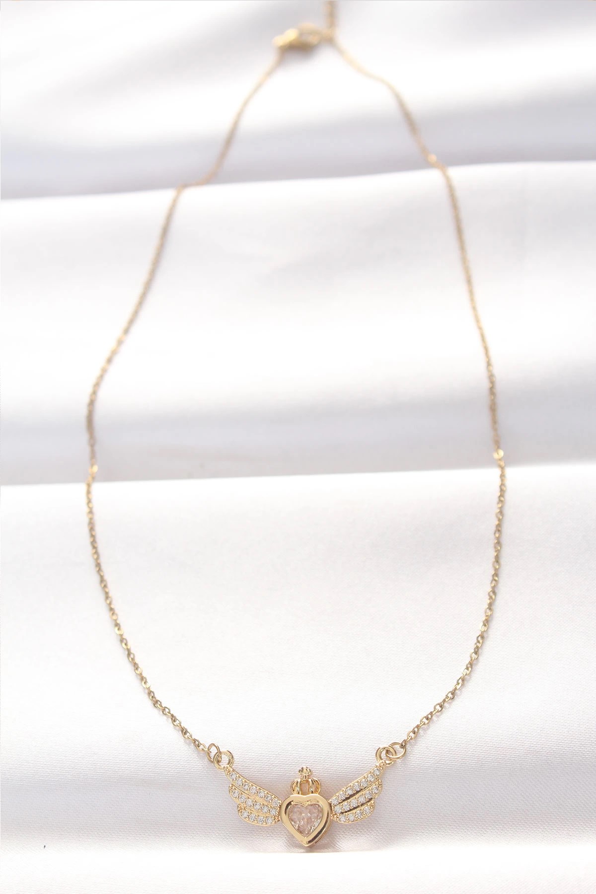 Mey İthalat® 316L Çelik Gold Renk Zirkon Taşlı Kalpli Kanat Kolye