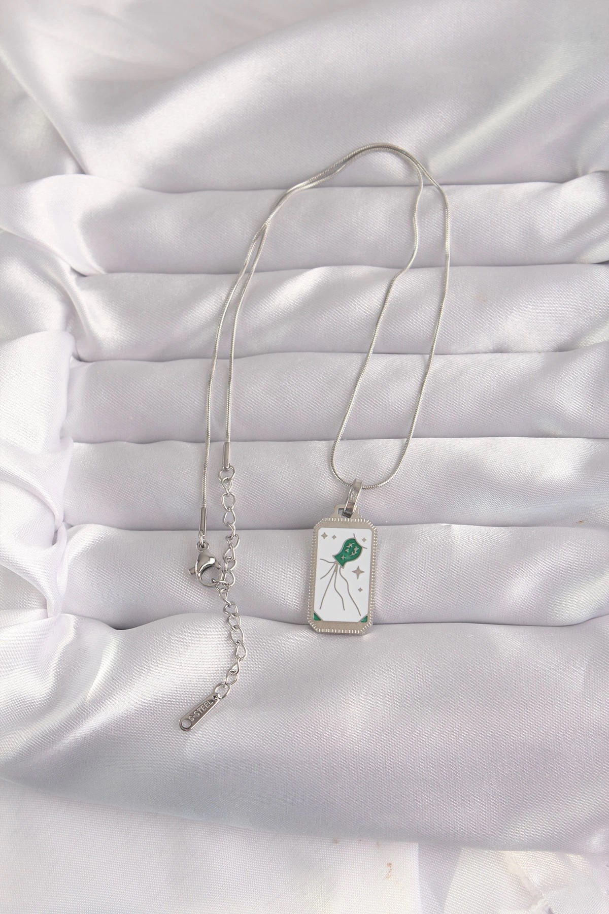 Mey İthalat® 316L Çelik Gümüş Renk Beyaz Mineli Tarot Kolye