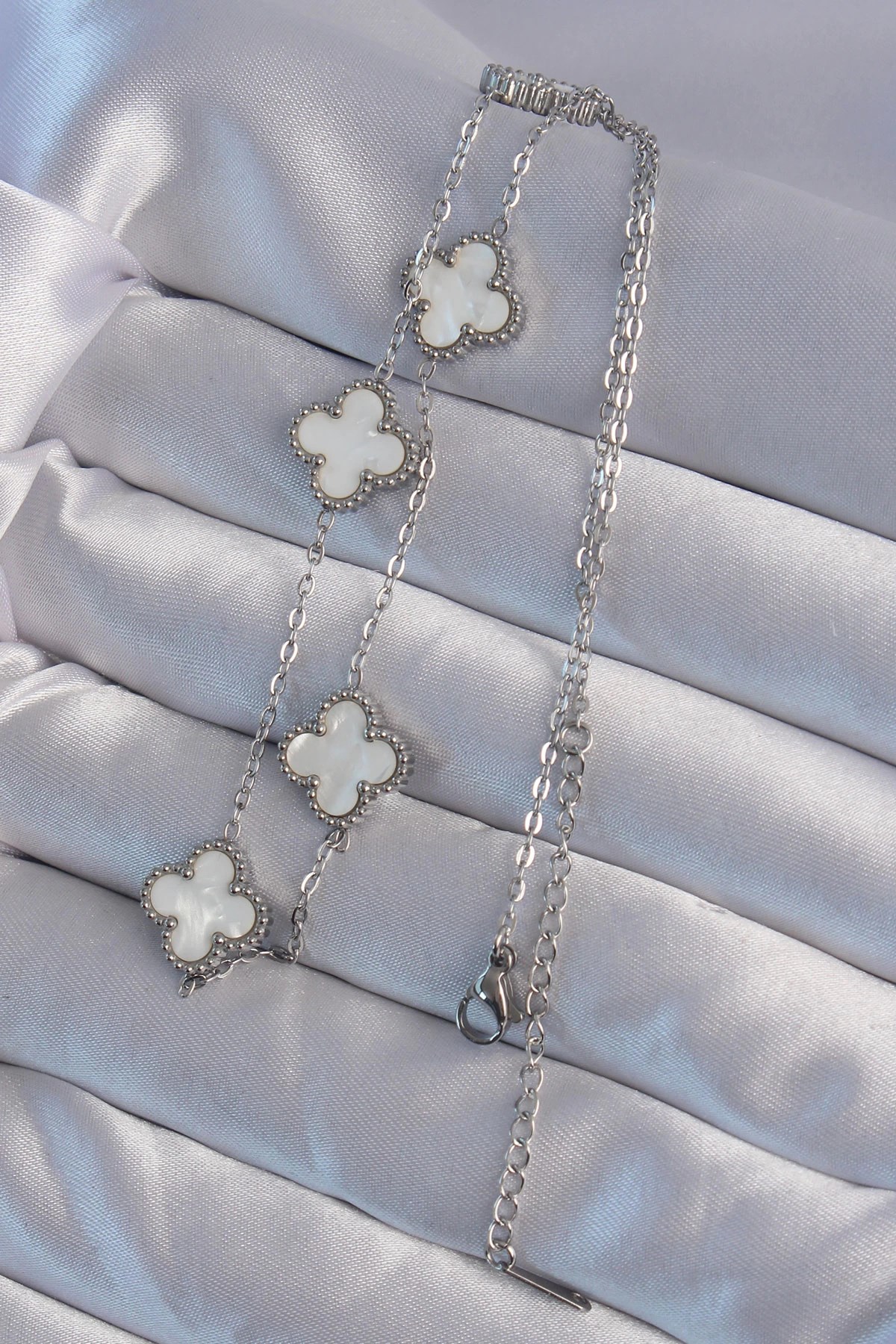 Mey İthalat® 316L Çelik Gümüş Renk Beyaz Sedefli Yonca Kolye