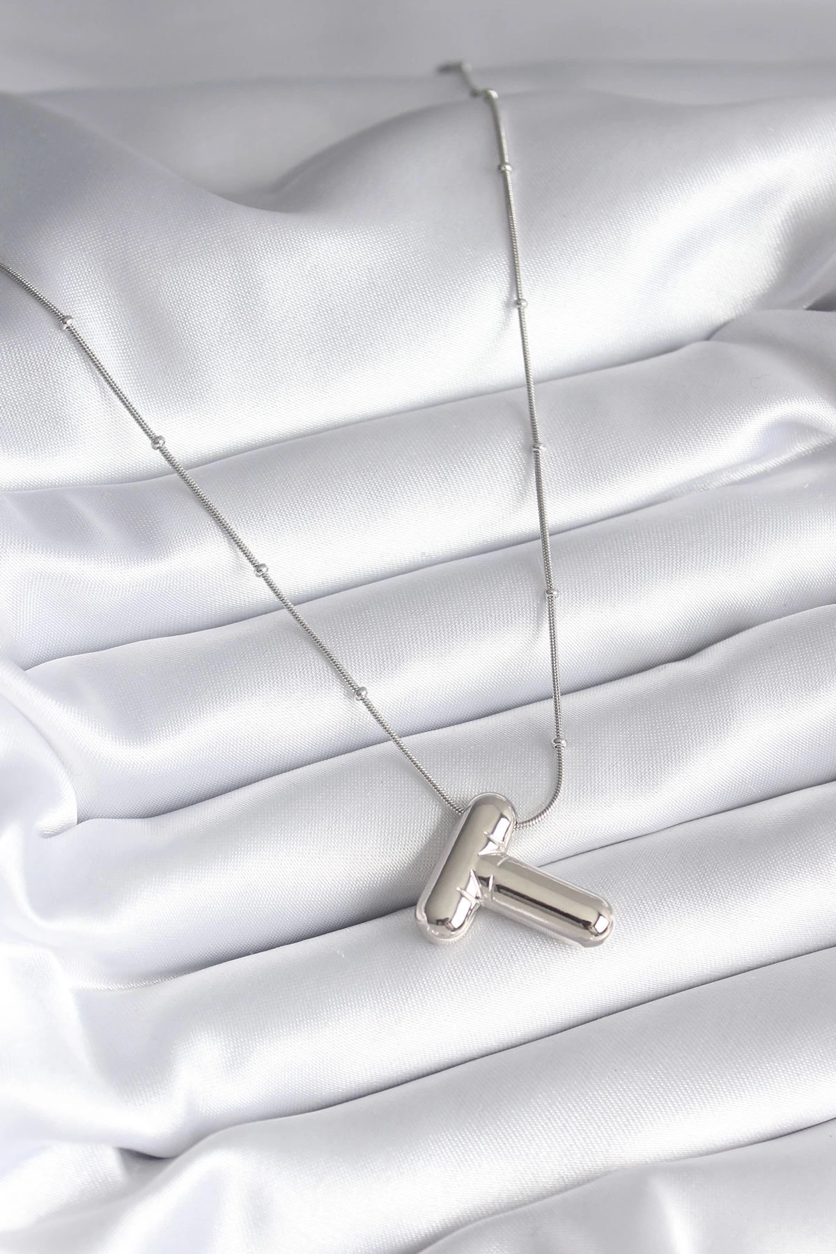 Mey İthalat® 316L Çelik Gümüş Renk Bubble "T" Harf Model Kadın Kolye