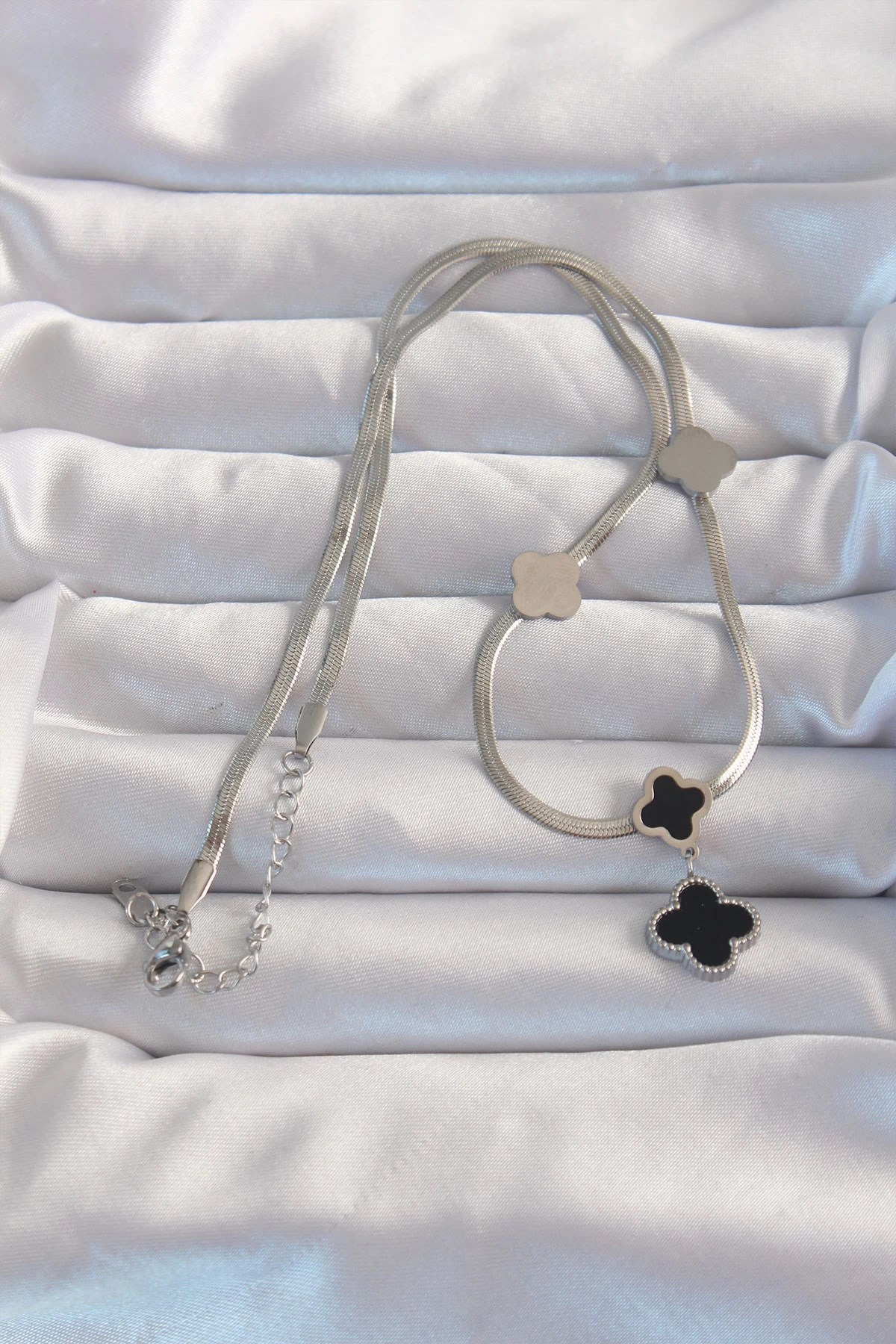 Mey İthalat® 316L Çelik Gümüş Renk İtalyan Zincirli Mineli Yonca Kolye