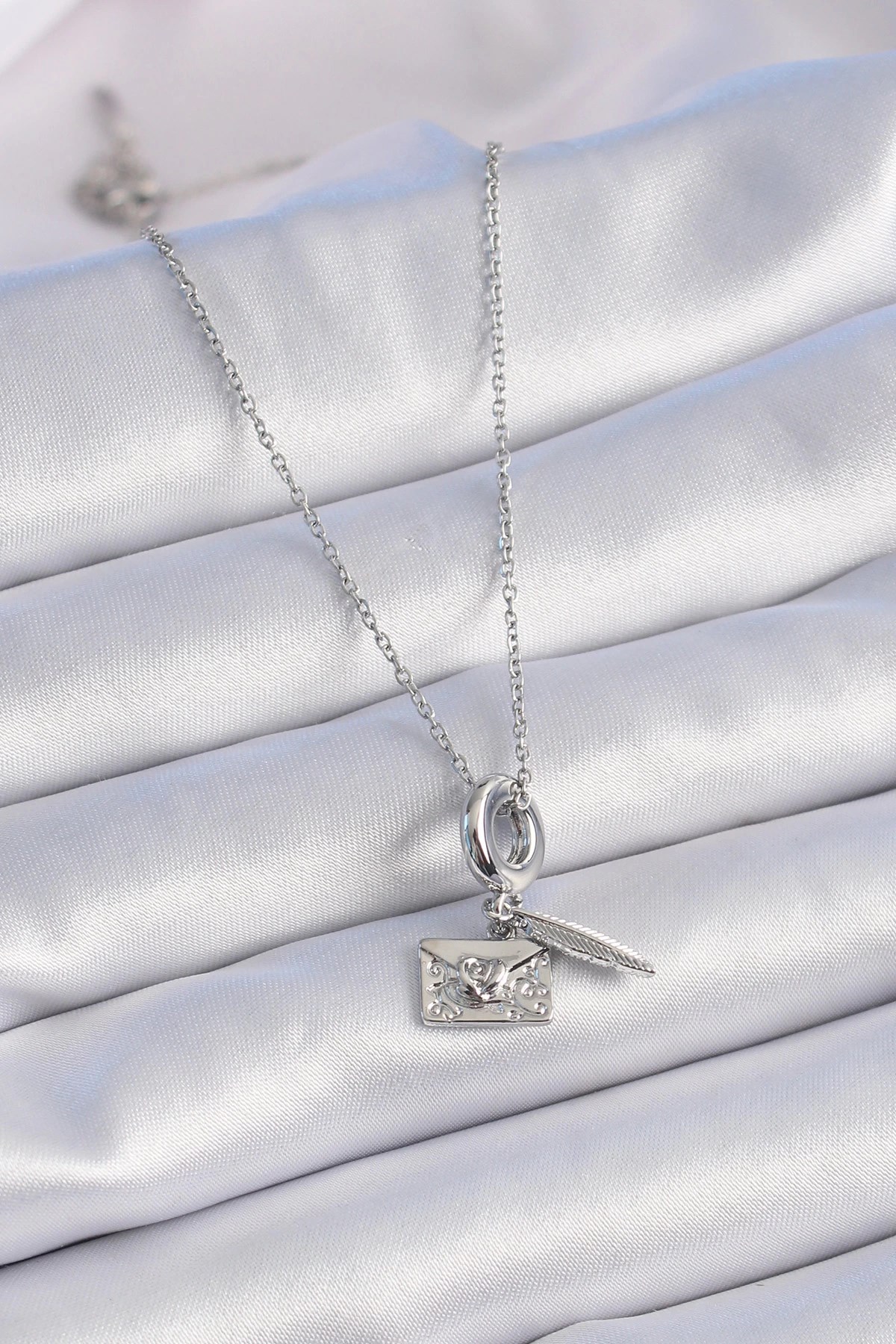 Mey İthalat® 316L Çelik Gümüş Renk Kalp Detay Mektup Figür Charm Model Kadın Kolye