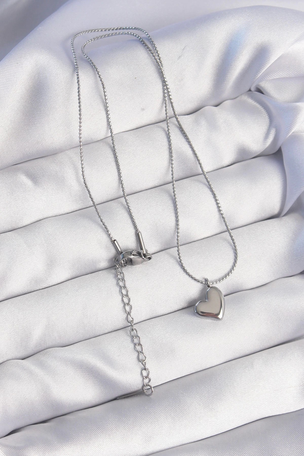Mey İthalat® 316L Çelik Gümüş Renk Minimal Kalp Tasarımlı Kolye