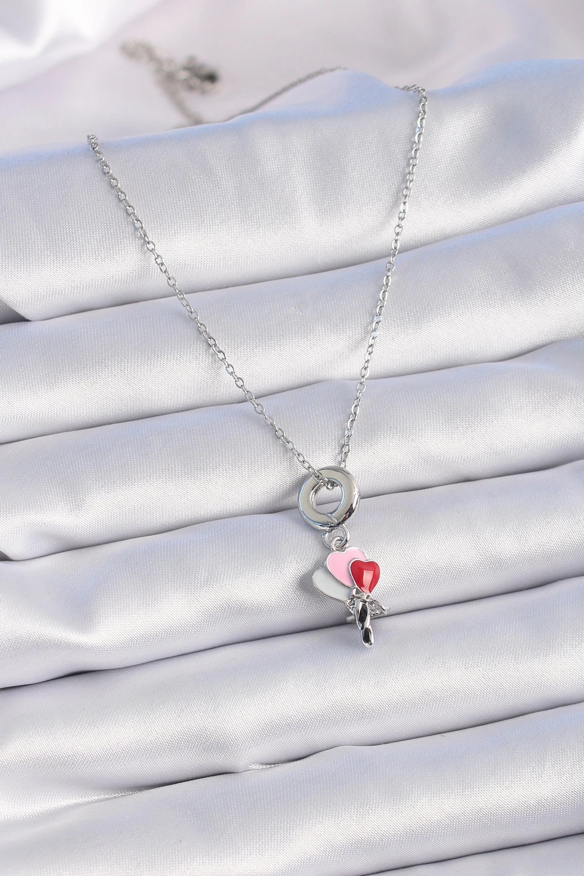 Mey İthalat® 316L Çelik Gümüş Renk Renkli Kalp Figür Charm Model Kadın Kolye