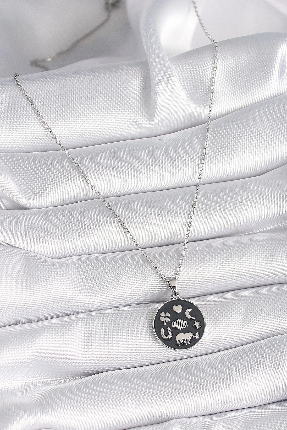 Mey İthalat® 316L Çelik Gümüş Renk Siyah Renk Şans Kolyesi