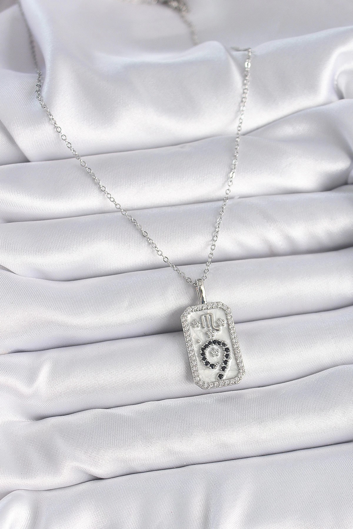 Mey İthalat® 316L Çelik Gümüş Renk Zincir Akrep Burcu Zirkon Taşlı Kadın Kolye