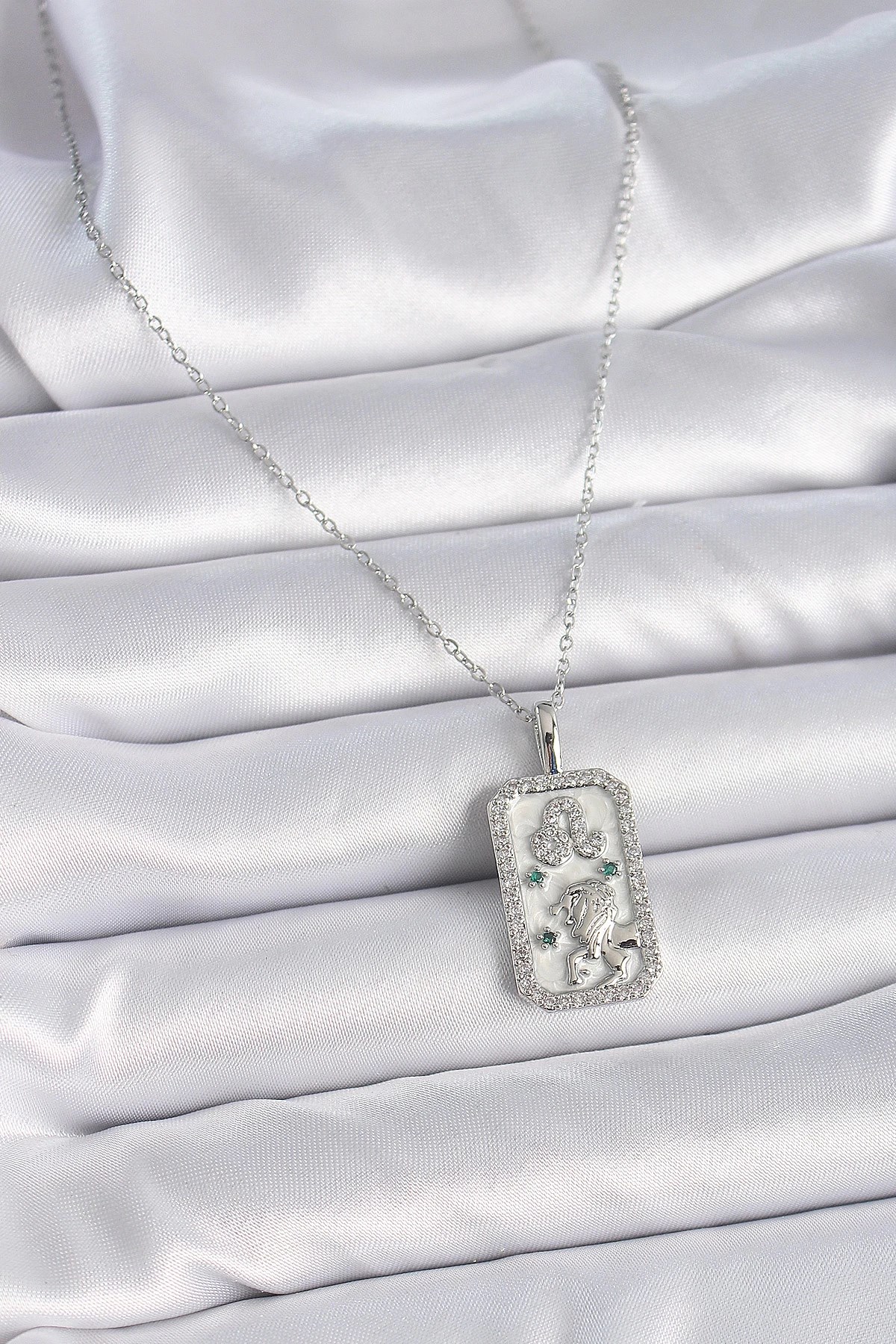 Mey İthalat® 316L Çelik Gümüş Renk Zincir Aslan Burcu Zirkon Taşlı Kadın Kolye