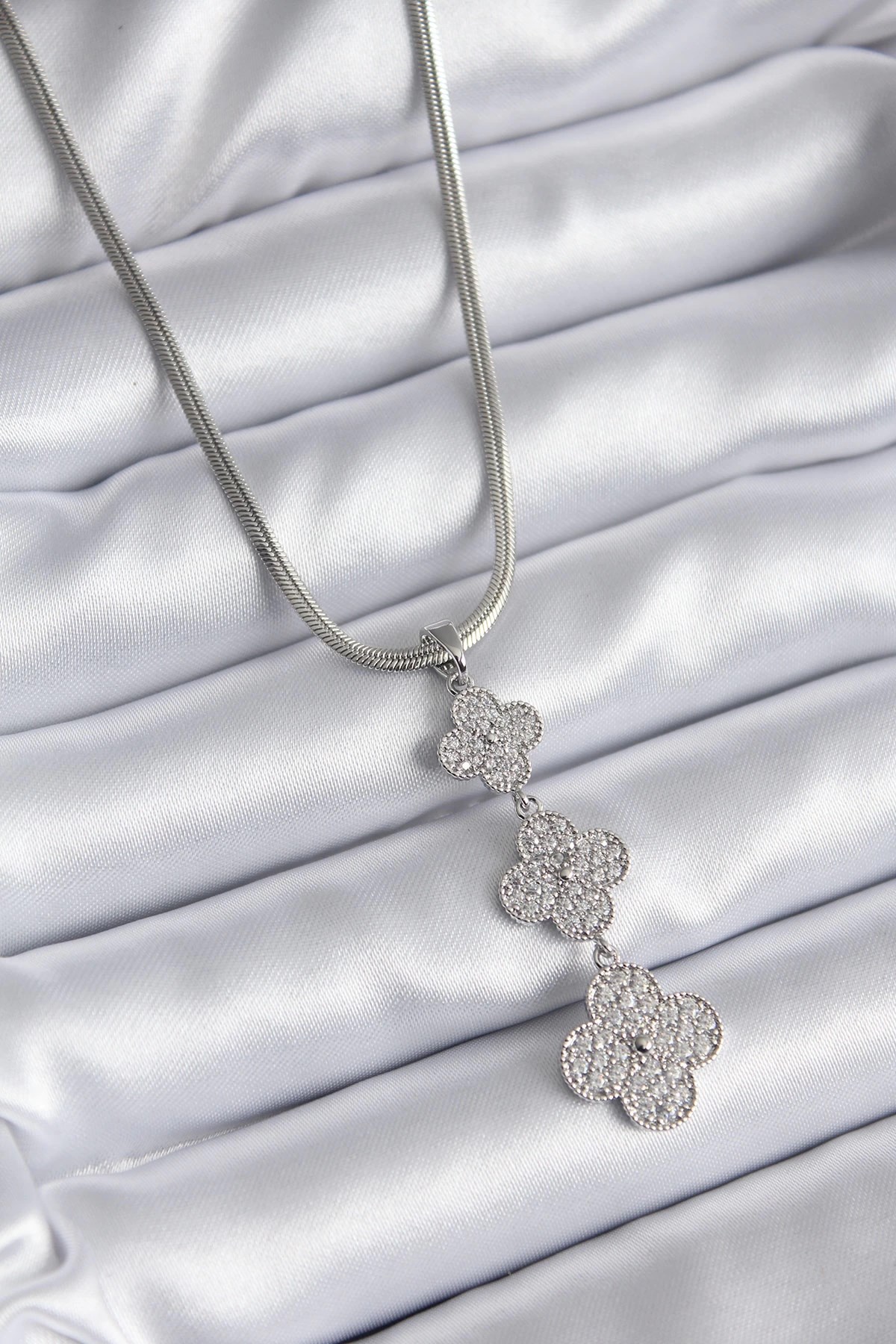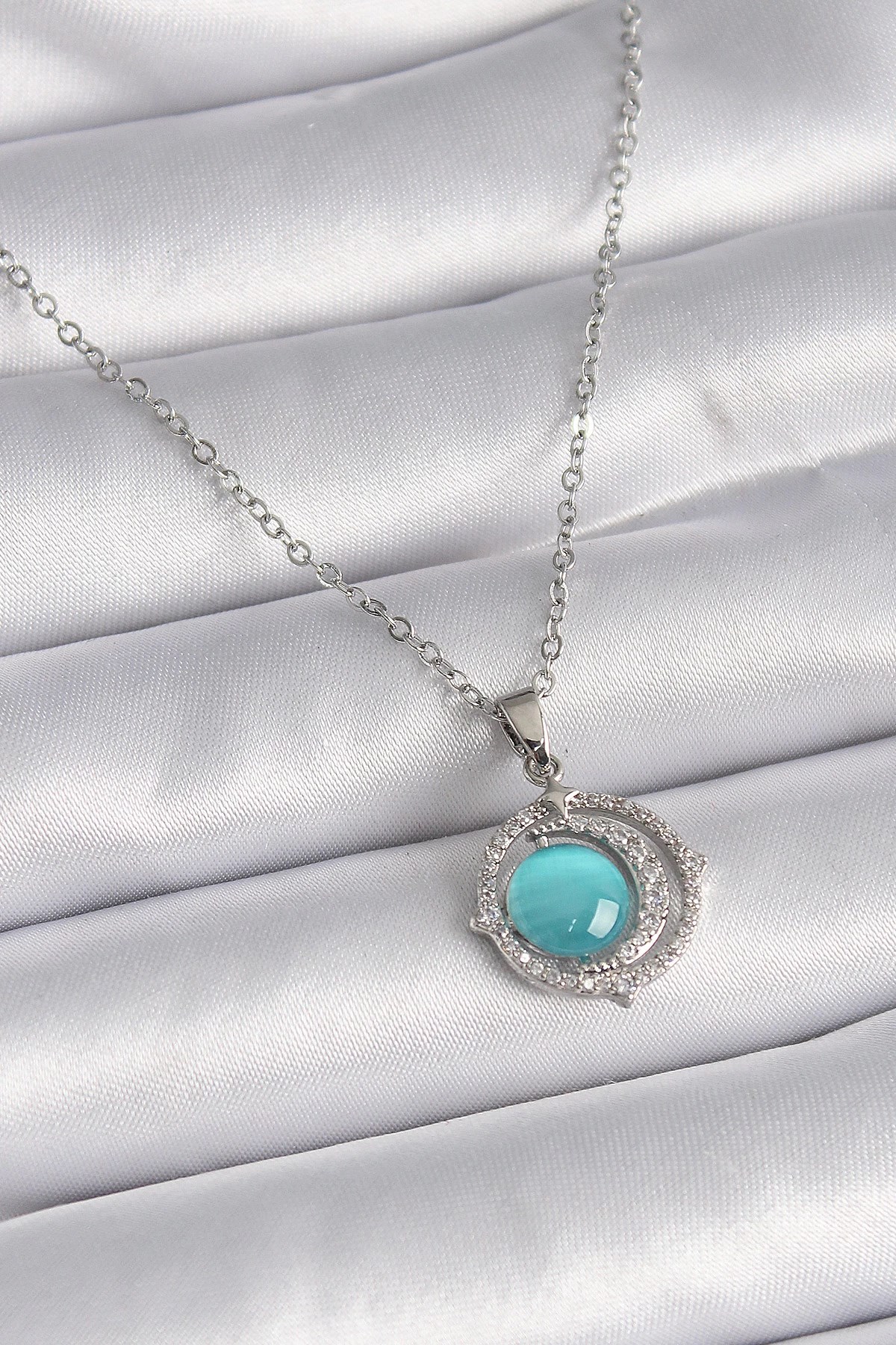 Mey İthalat® 316L Çelik Gümüş Renk Zincir Balık Burcu Zirkon Taşlı Kadın Kolye