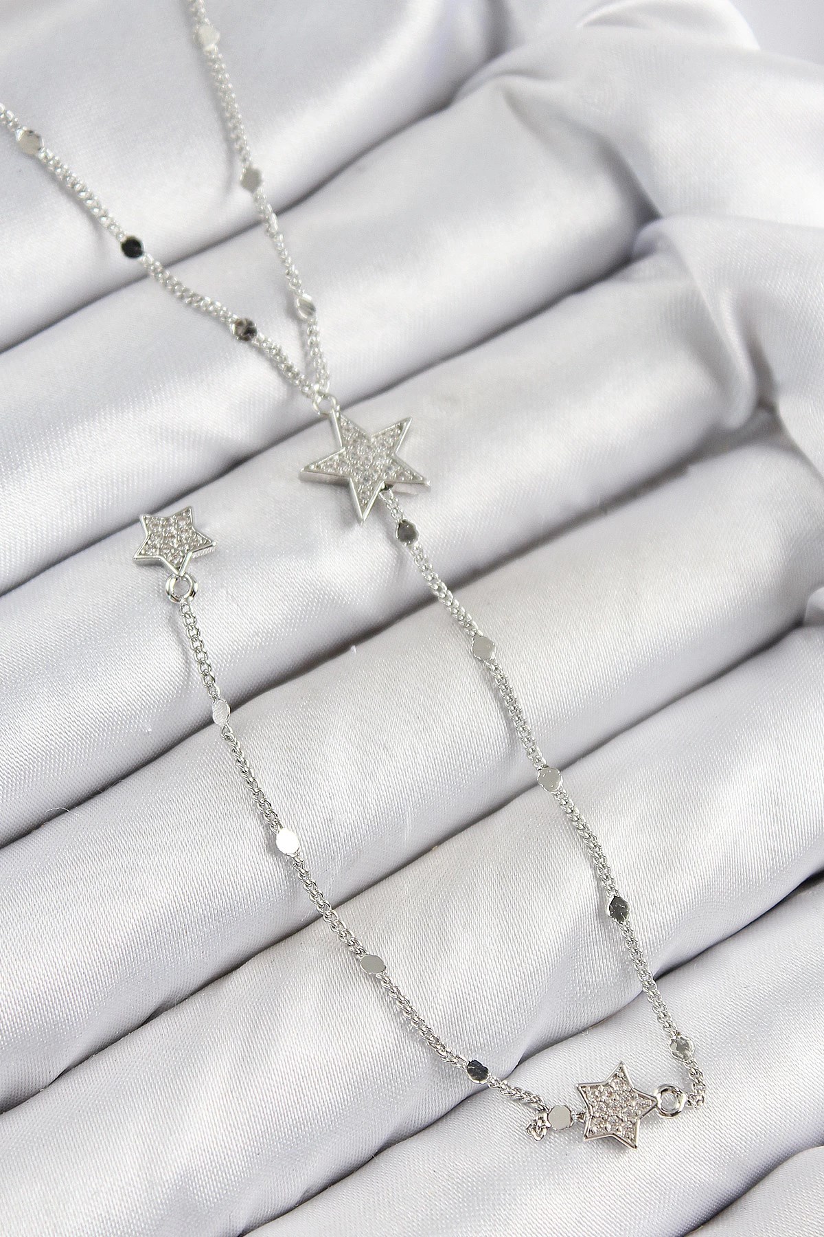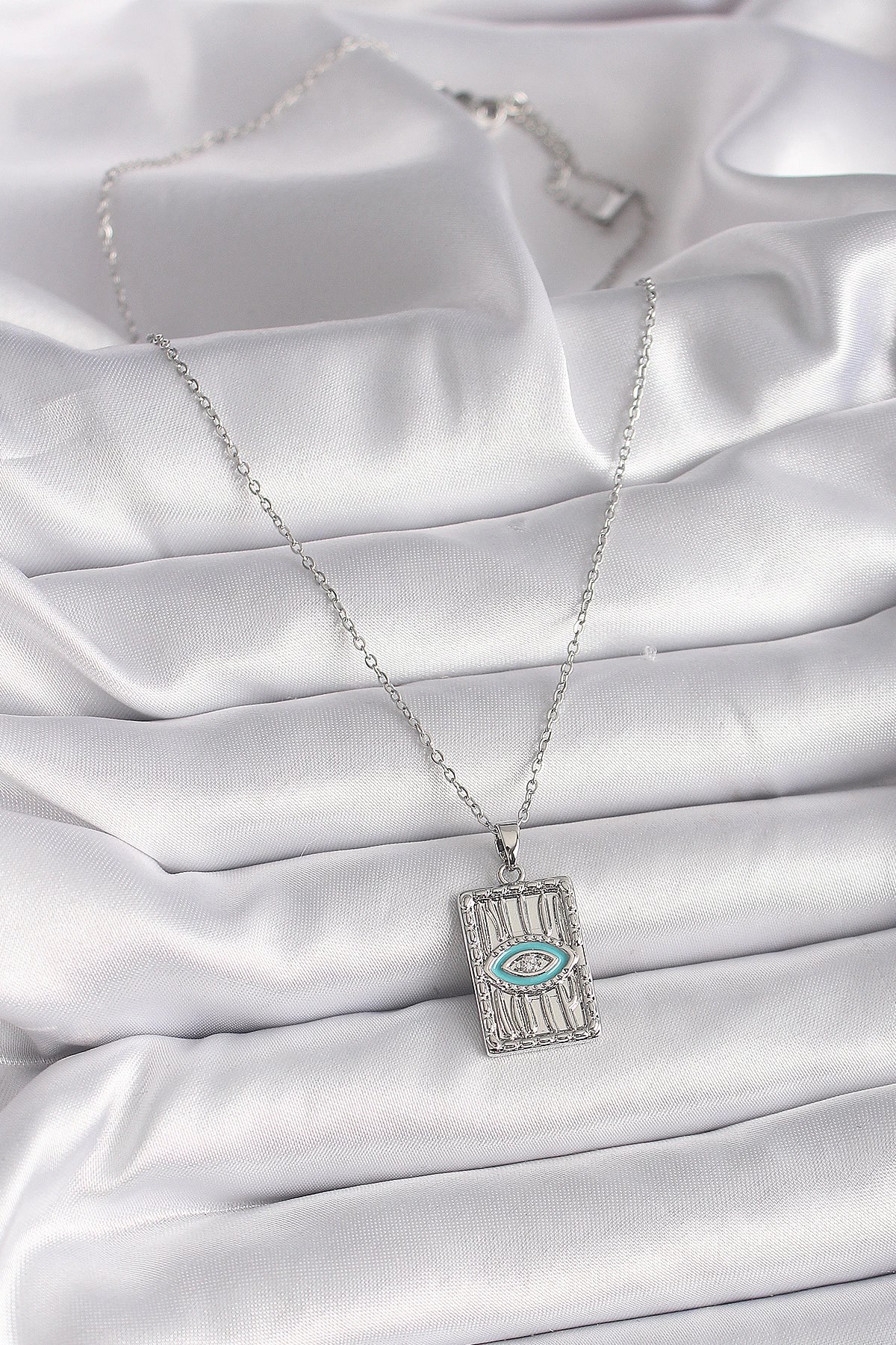 Mey İthalat® 316L Çelik Gümüş Renk Zincir Göz İşlemeli Madalyon Model Kadın Kolye