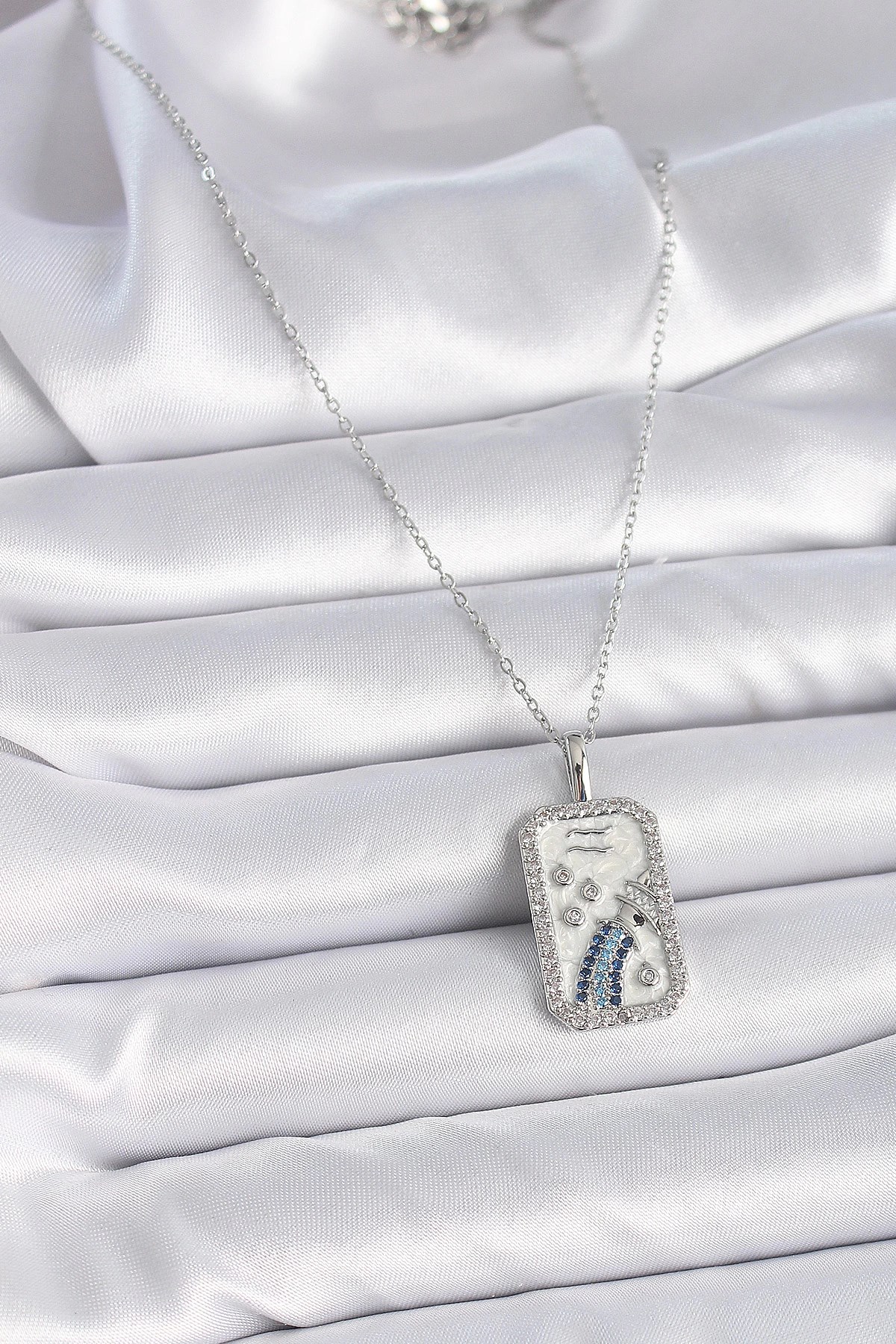 Mey İthalat® 316L Çelik Gümüş Renk Zincir Kova Burcu Zirkon Taşlı Kadın Kolye