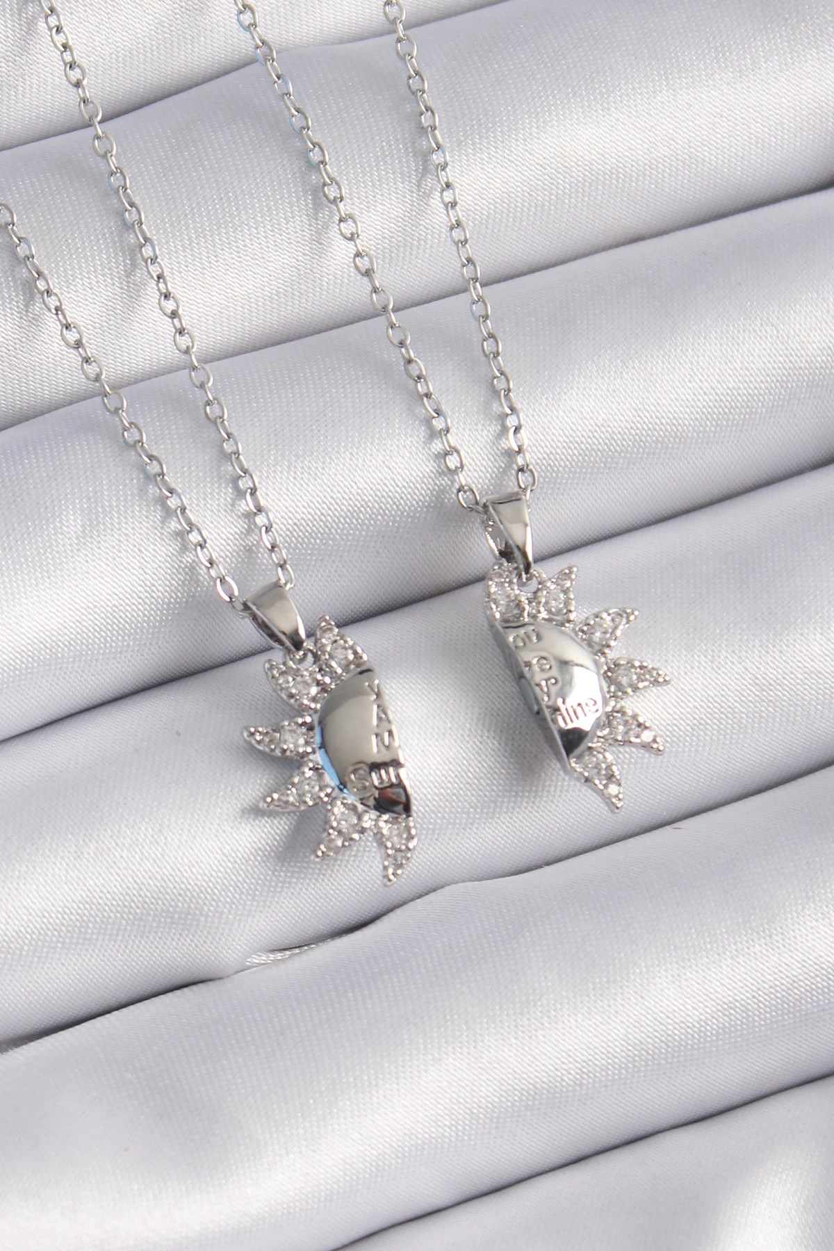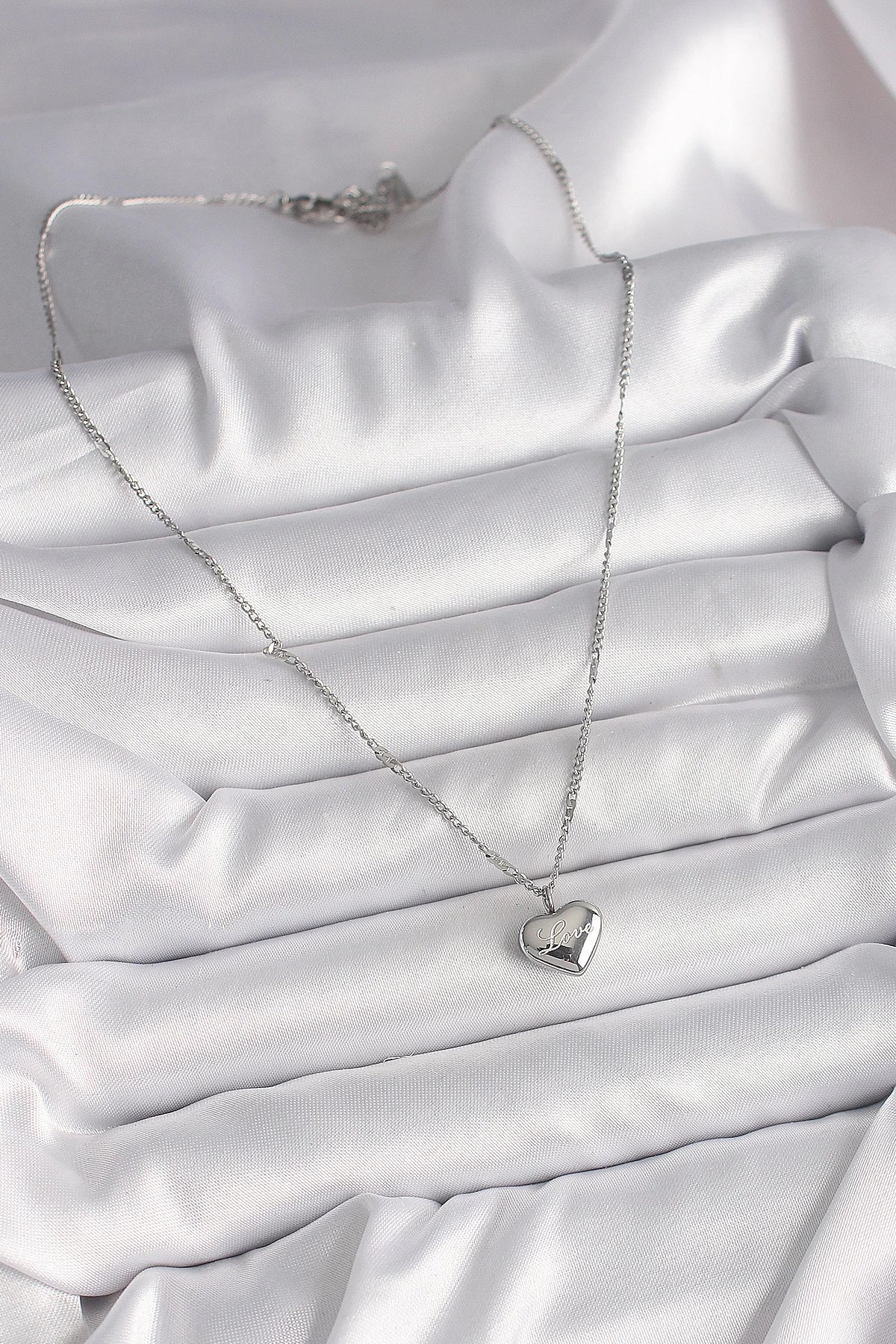 Mey İthalat® 316L Çelik Gümüş Renk Zincir Love İşleme Kalp Figür Kadın Kolye