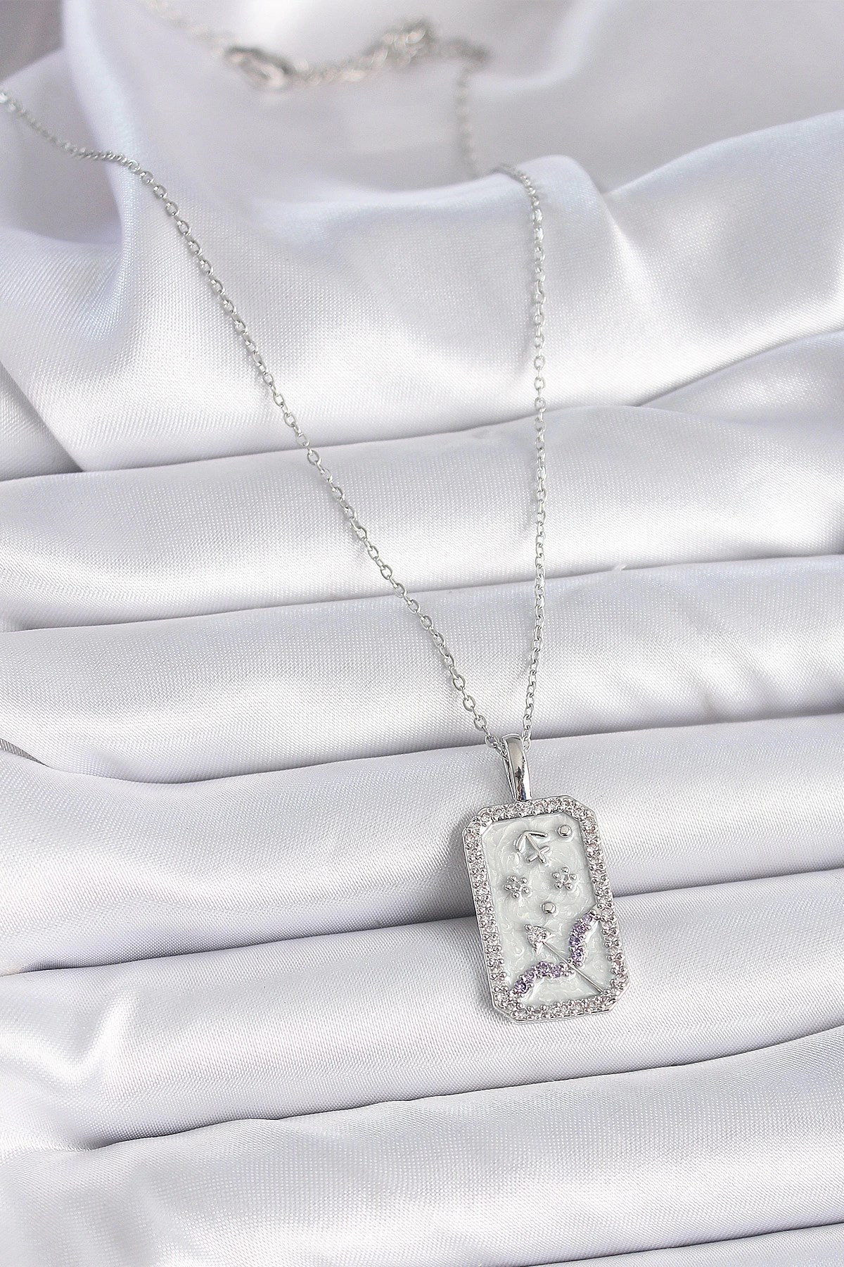 Mey İthalat® 316L Çelik Gümüş Renk Zincir Yay Burcu Zirkon Taşlı Kadın Kolye