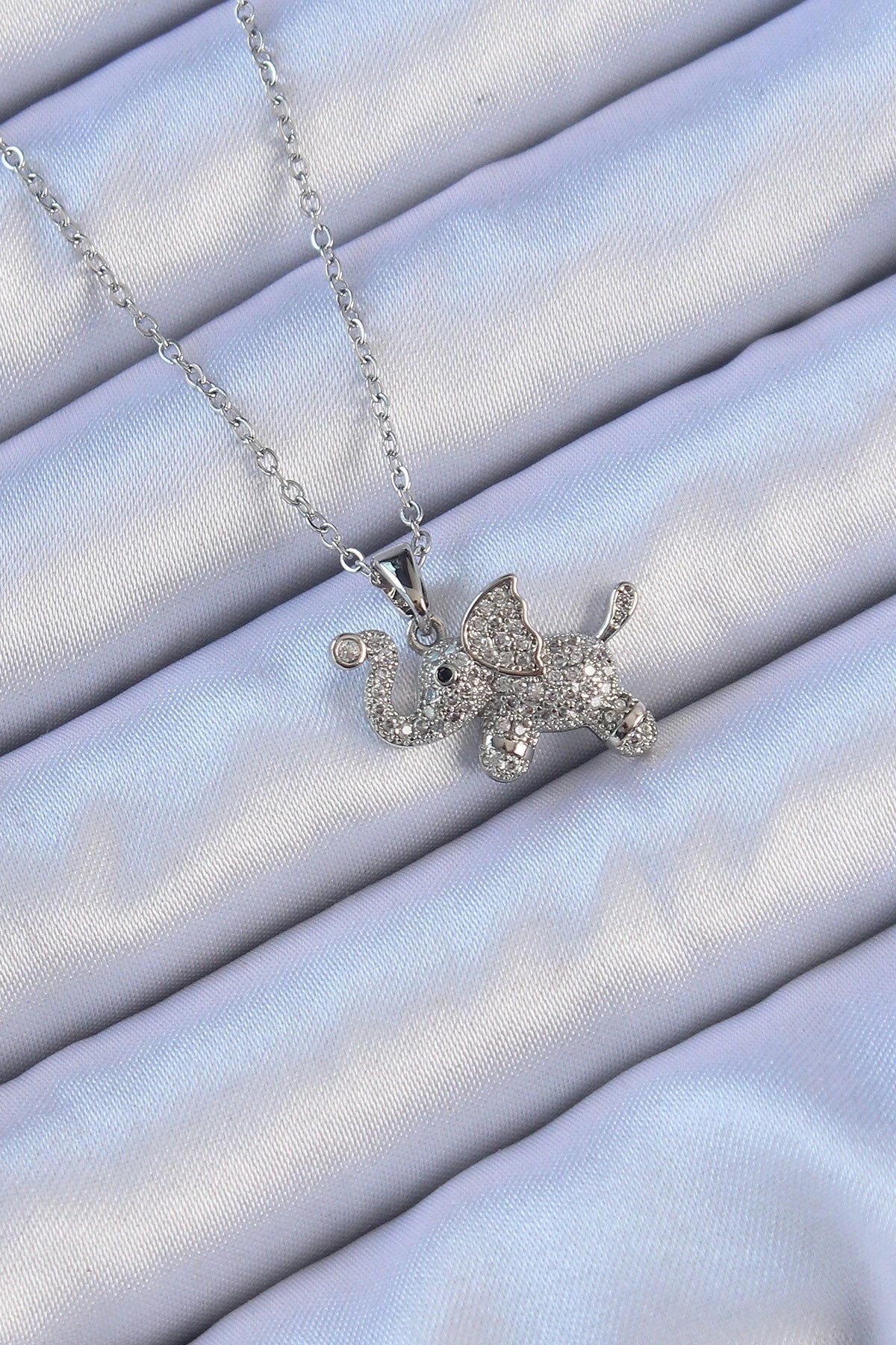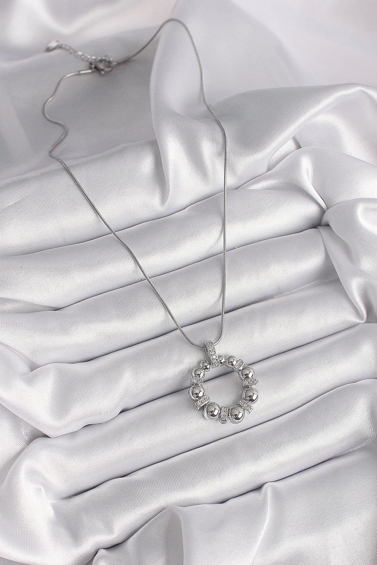 Mey İthalat® 316L Çelik Gümüş Renk Zincir Zirkon Taş Detaylı Bombeli Halka Model Kadın Kolye