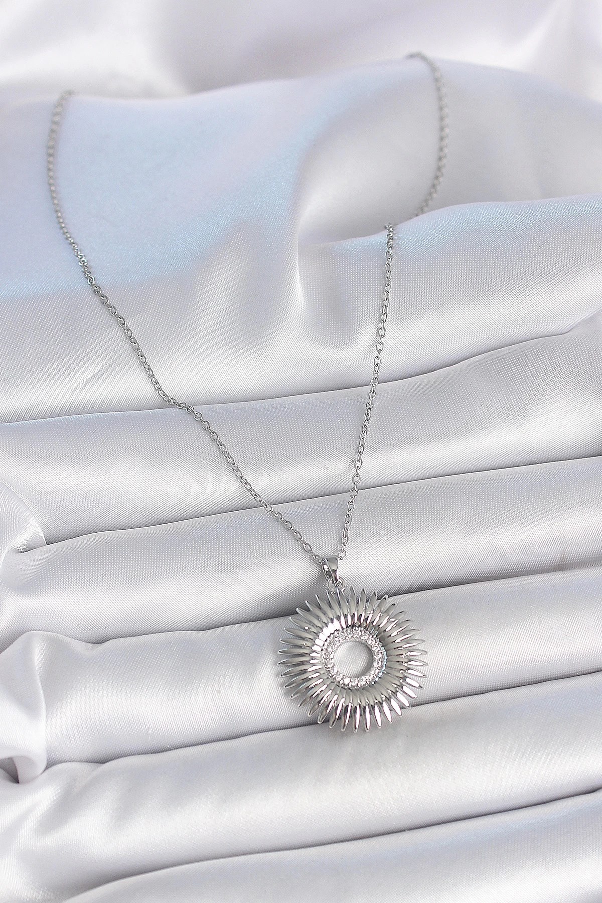 Mey İthalat® 316L Çelik Gümüş Renk Zincir Zirkon Taşlı Nova Yıldız Model Kadın Kolye
