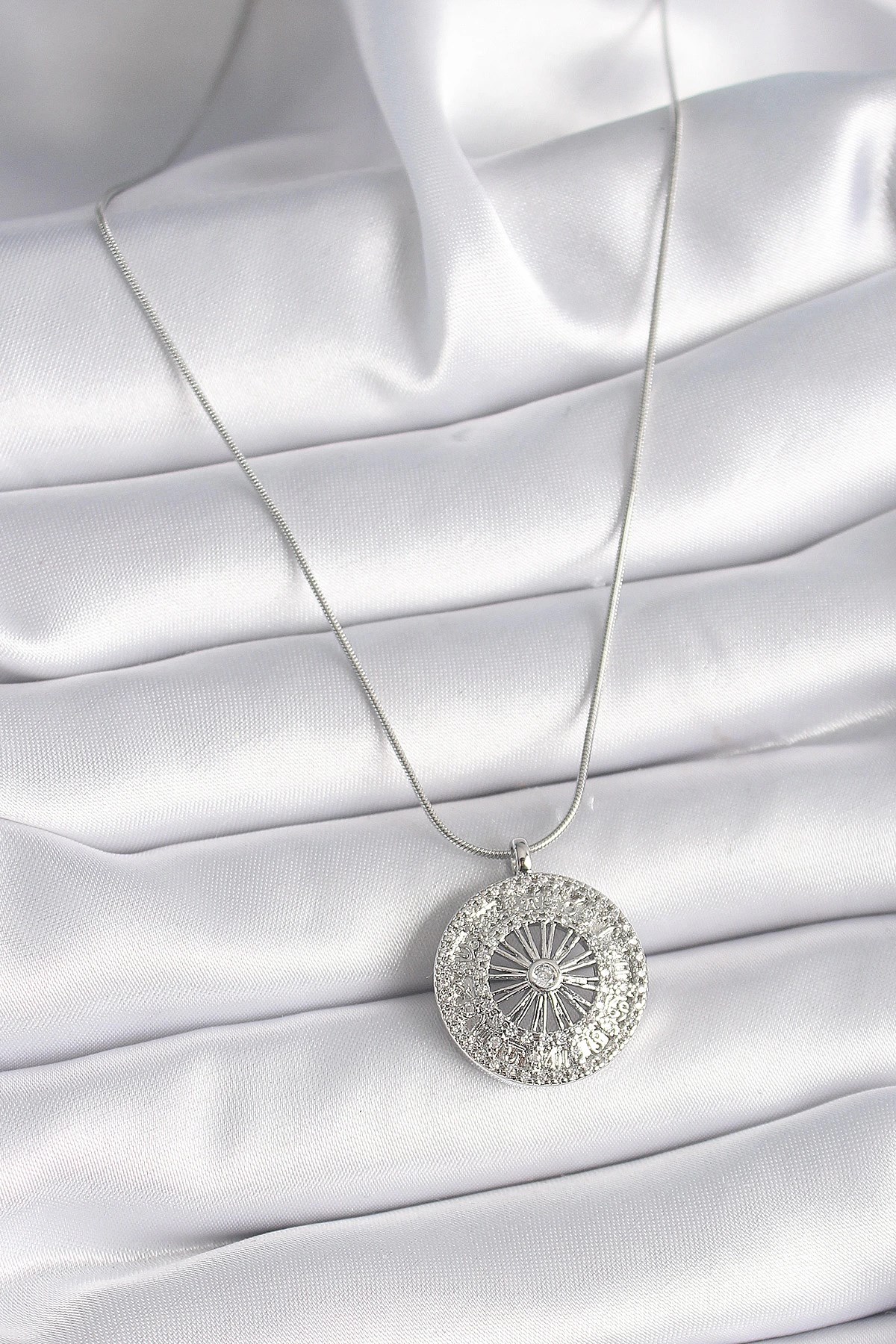 Mey İthalat® 316L Çelik Gümüş Renk Zirkon Taşlı 12 Burç Madalyon Model Kadın Kolye
