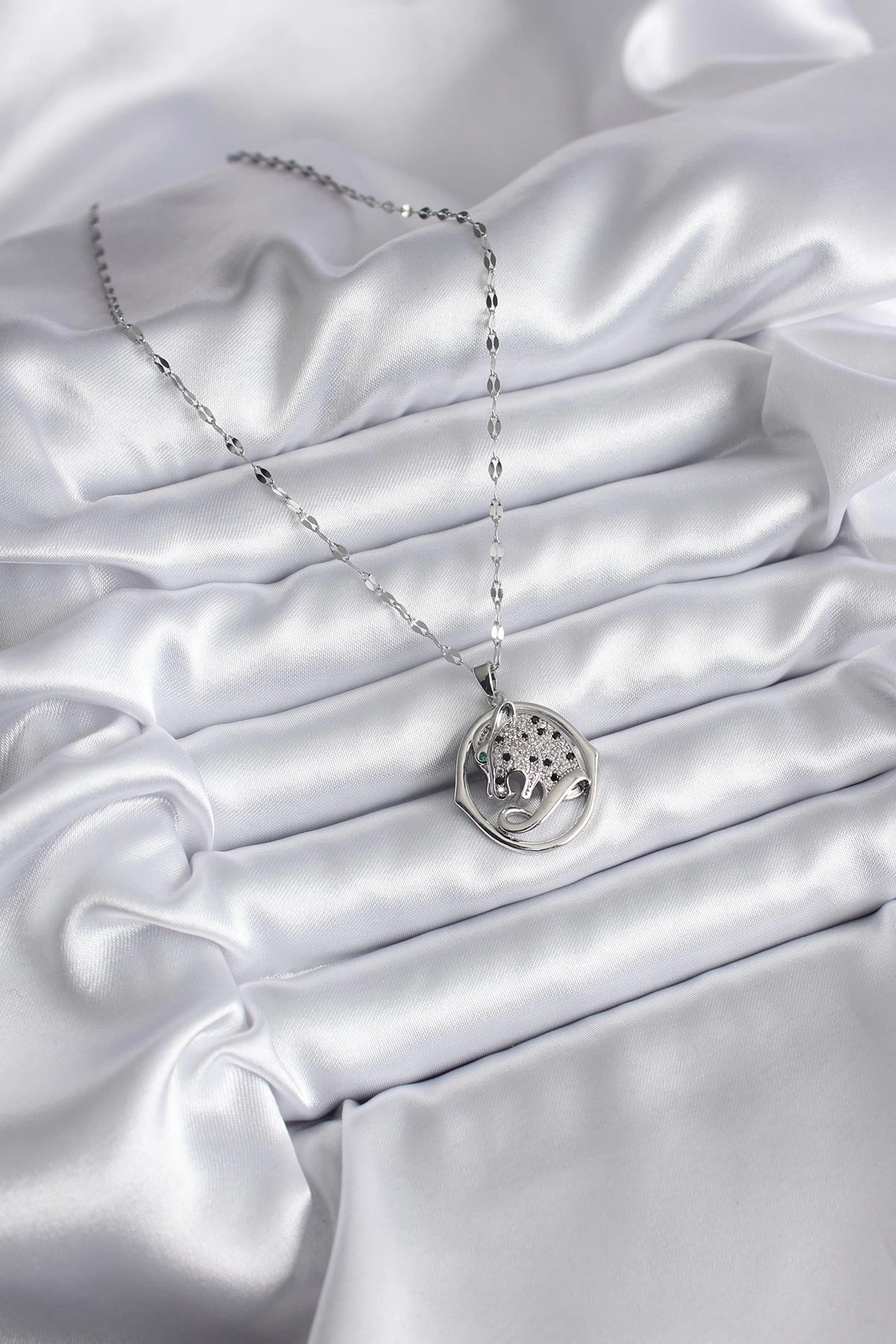 Mey İthalat® 316L Çelik Gümüş Renk Zirkon Taşlı Jaguar Model Kadın Kolye