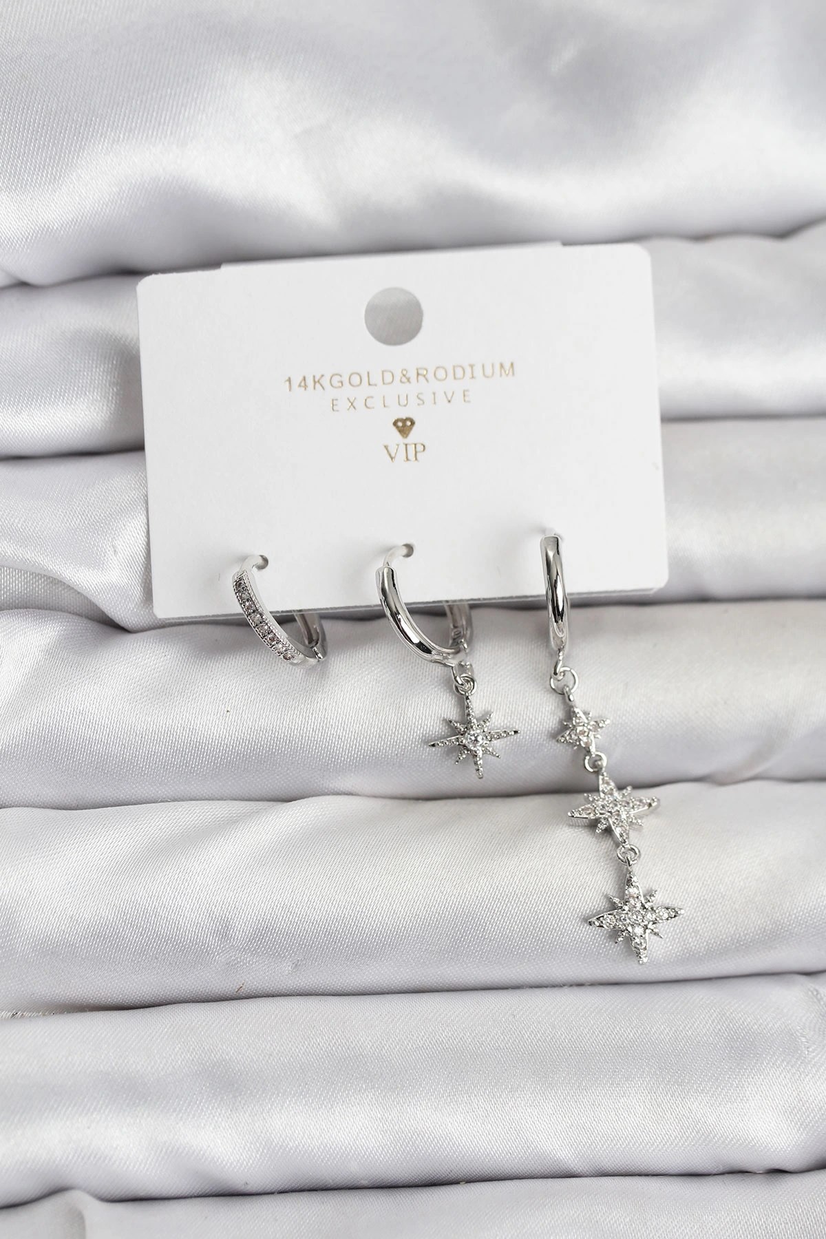 Mey İthalat® 316L Çelik Gümüş Renk Zirkon Taşlı Labirent Model Kadın Küpe Seti