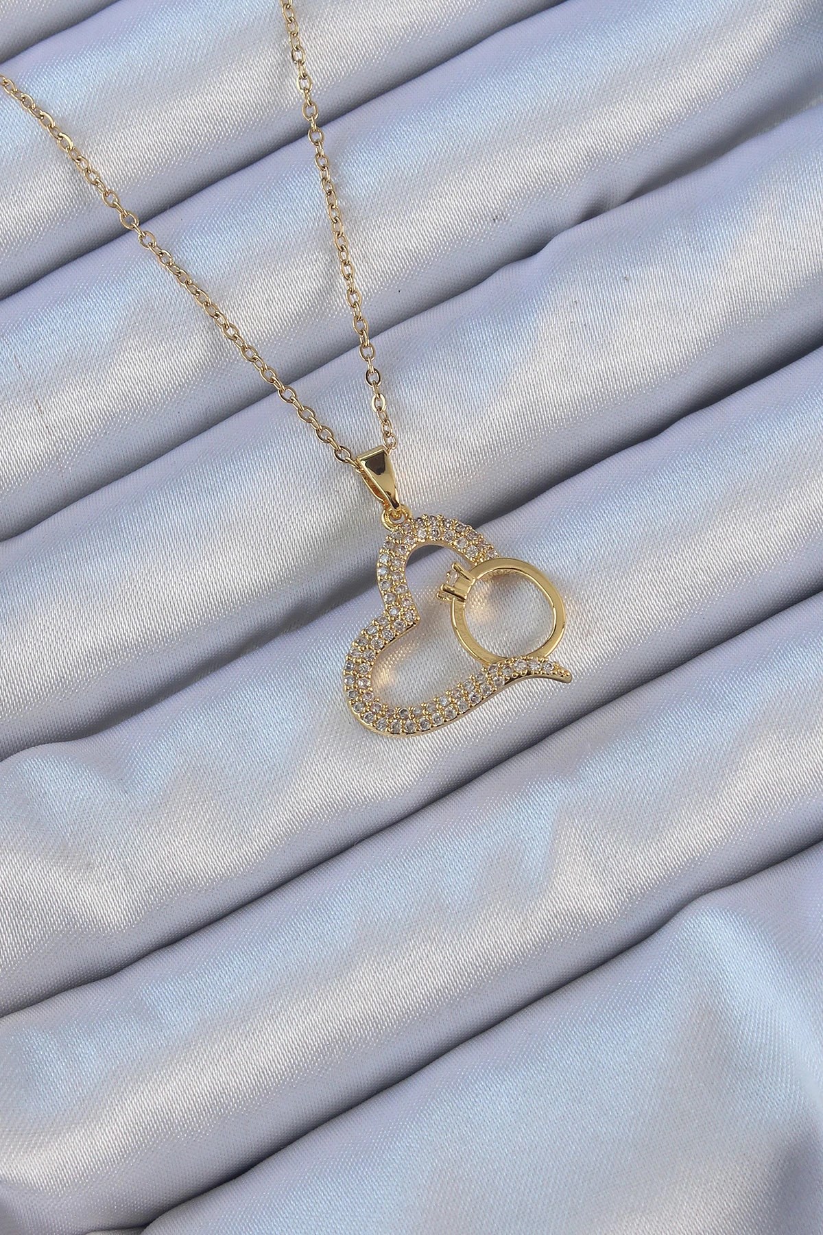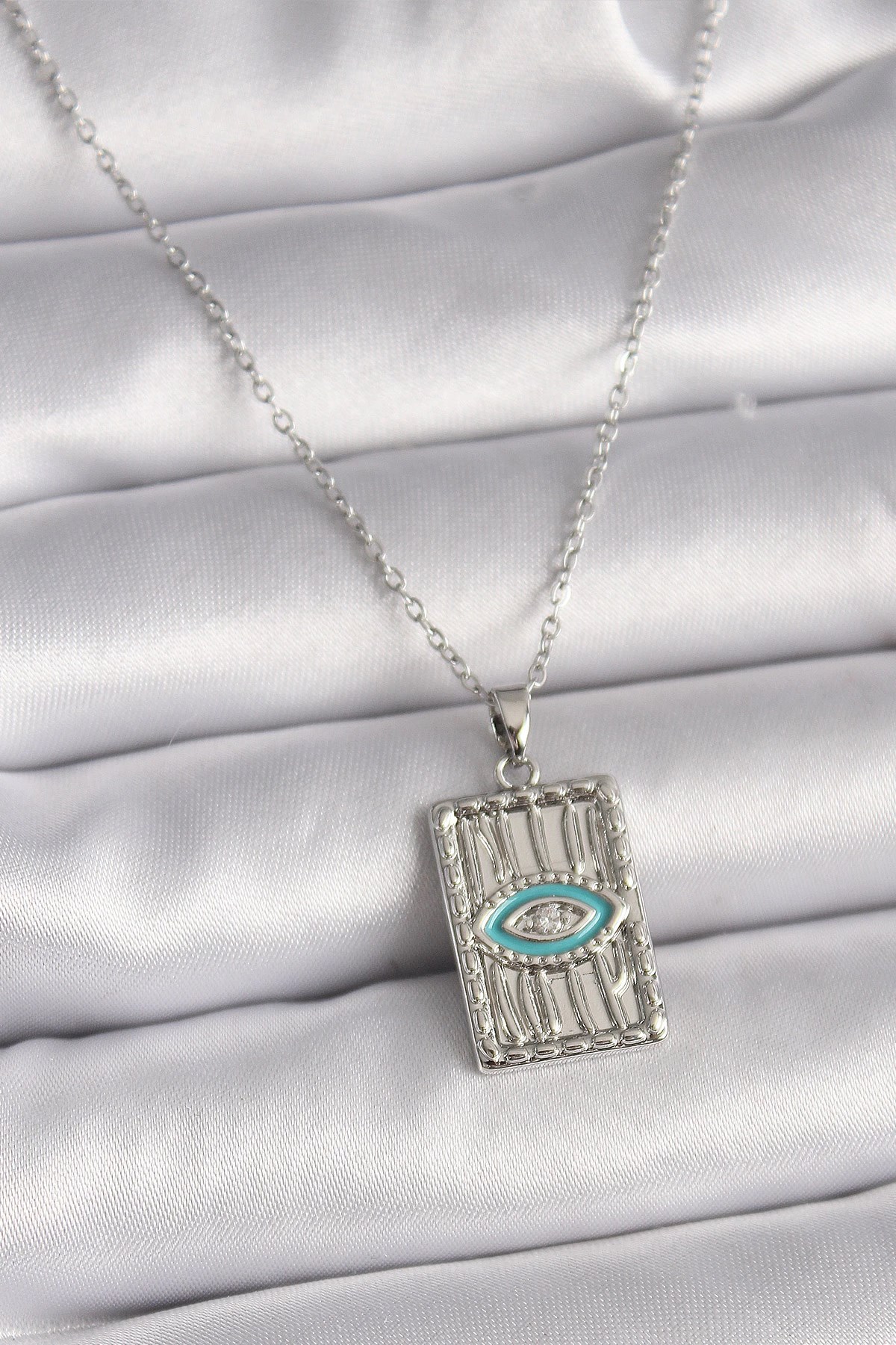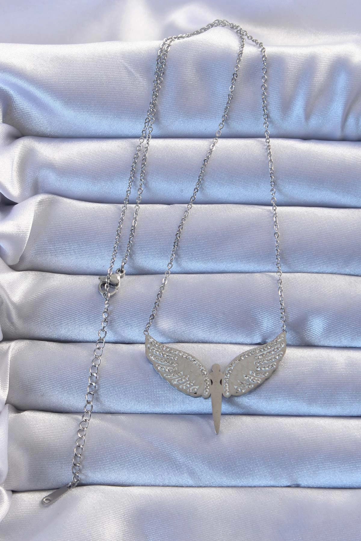Mey İthalat® 316L Çelik Gümüş Renk Zirkon Taşlı Mikail Kolye