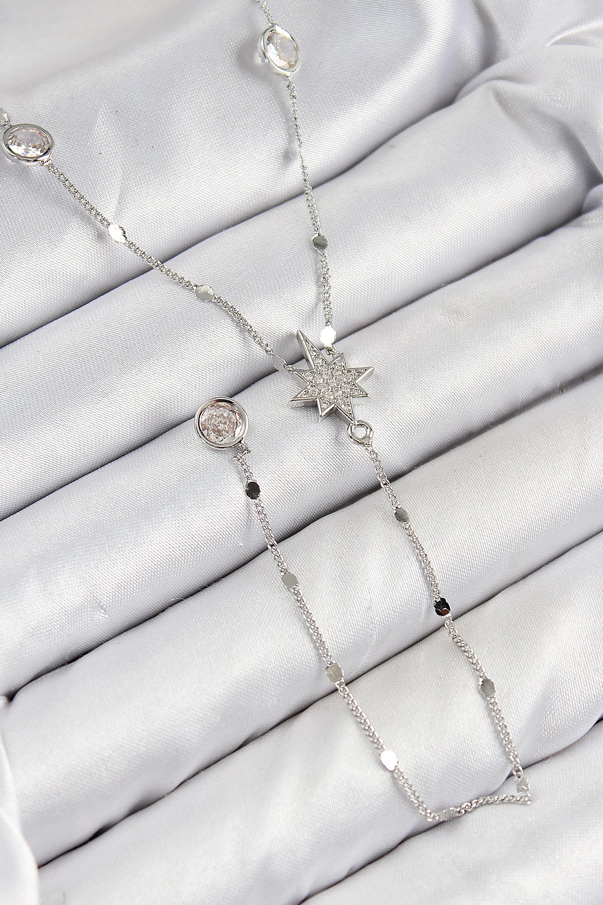 Mey İthalat® 316L Çelik Gümüş Renk Zirkon Taşlı Nazar Boncuk Model Kadın Kolye