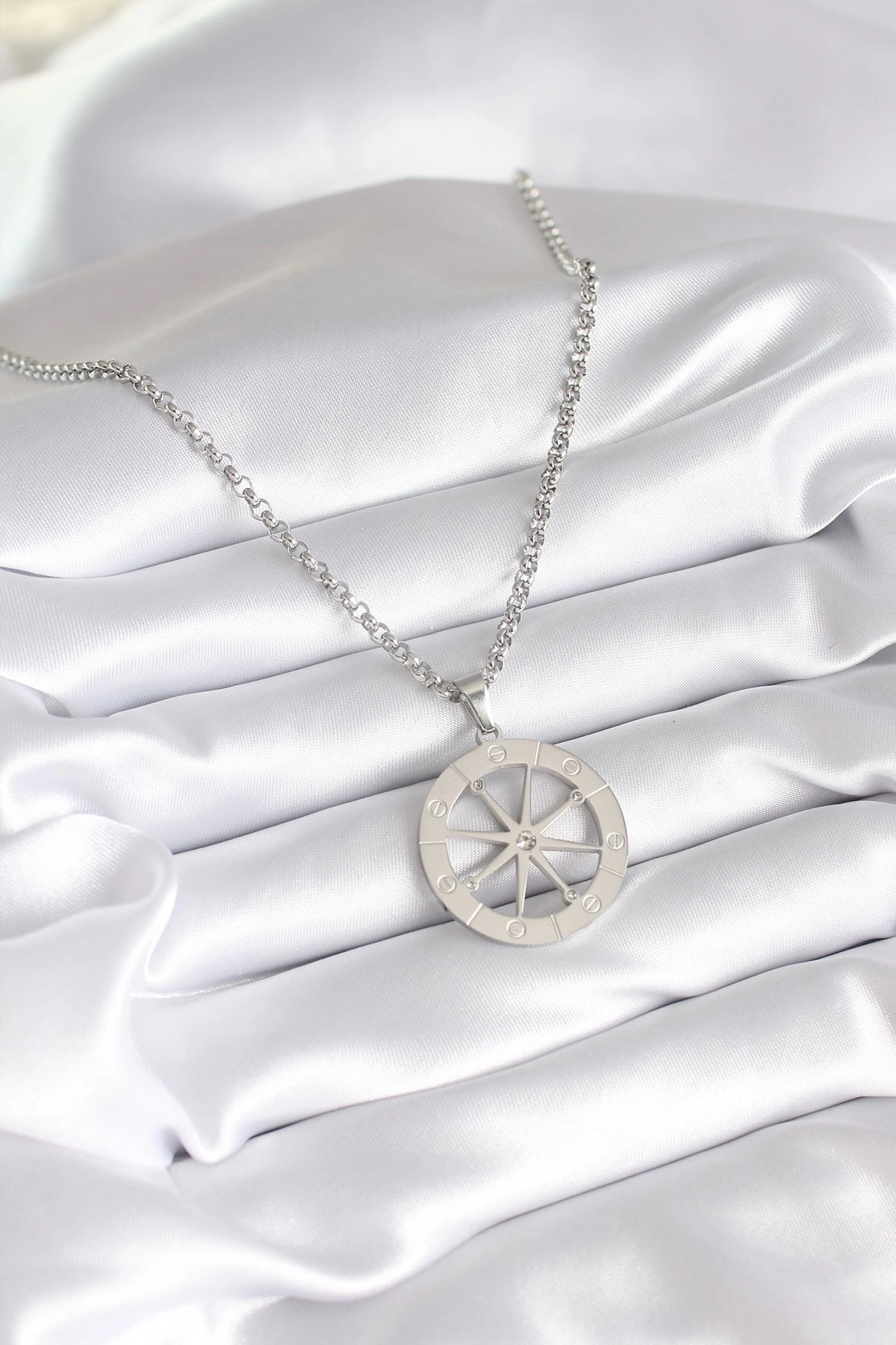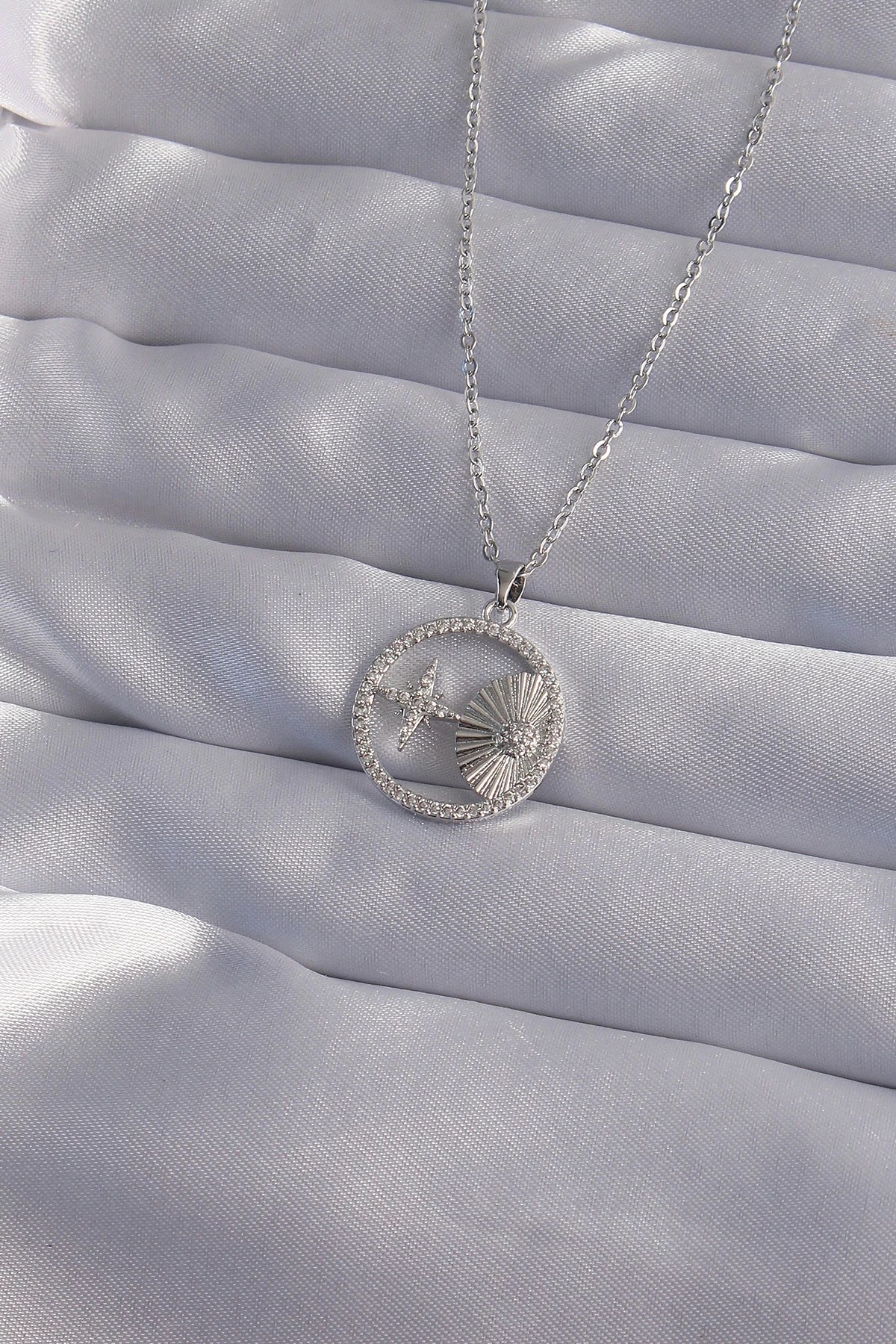 Mey İthalat® 316L Çelik Gümüş Renk Zirkon Taşlı Rüya Kapanı Model İşeme Detay Kadın Kolye