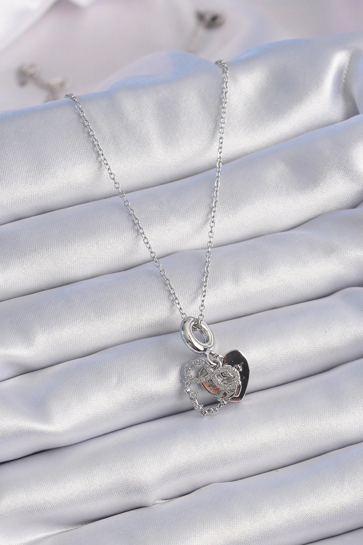 Mey İthalat® 316L Çelik Gümüş Renk Zirkon Taşlı Sonsuzluk Kalp Figür Charm Model Kadın Kolye