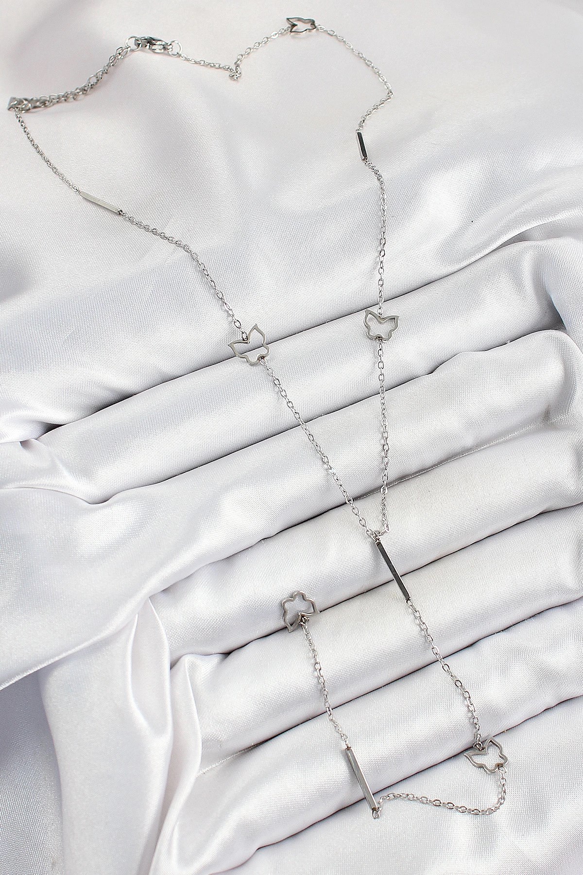 Mey İthalat® 316L Çelik Kelebek Figürlü Y Model Gümüş Renk Kadın Kolye