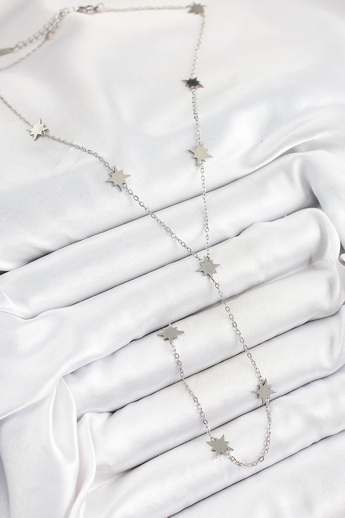 Mey İthalat® 316L Çelik Kutup Yıldızı Figürlü Y Model Gümüş Renk Kadın Kolye