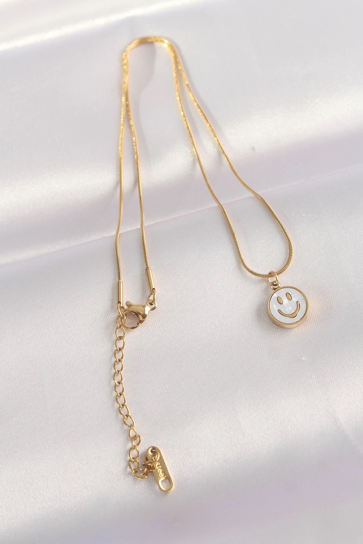 Mey İthalat® 316L Çelik Zincir Altın Renk Mermer Desenli Minimal Smile Kolye