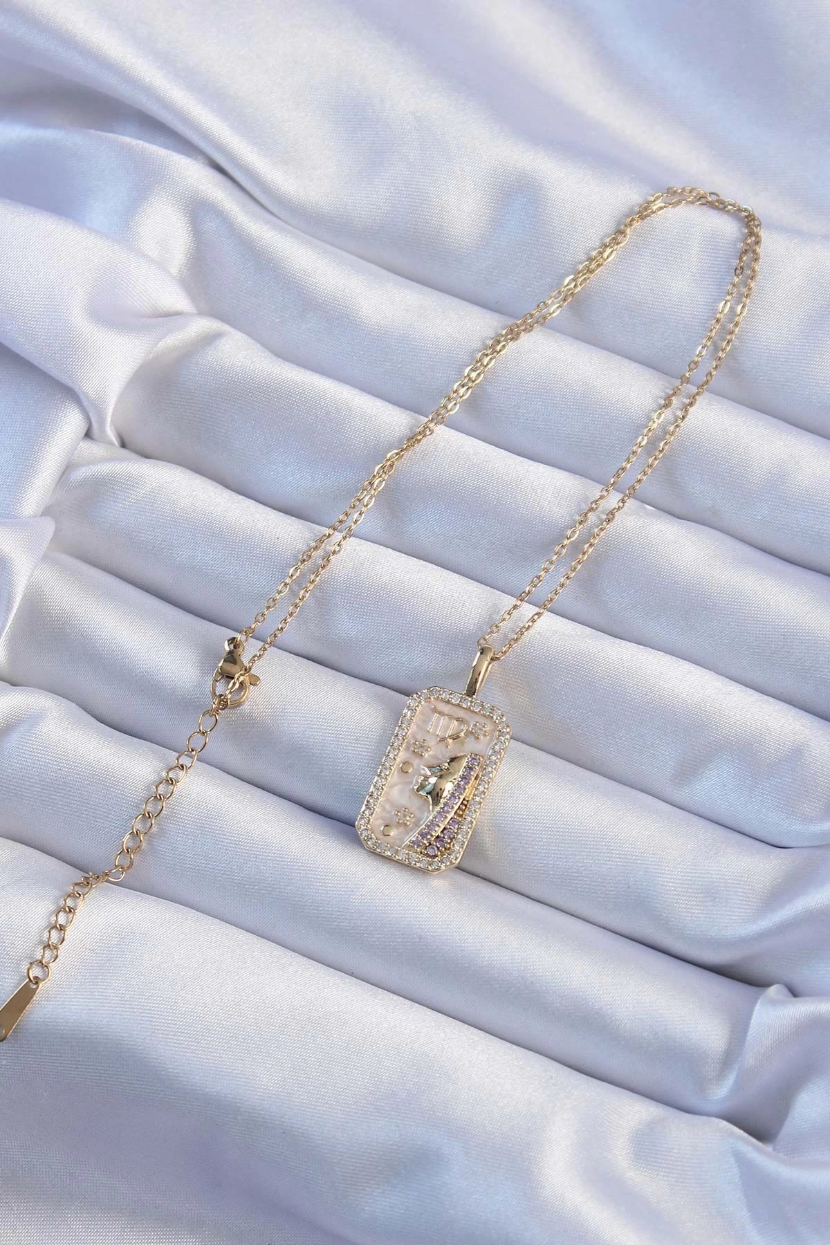 Mey İthalat® 316L Çelik Zincir Altın Renk Zirkon Taşlı Yüz Figürlü Tarot Kolye