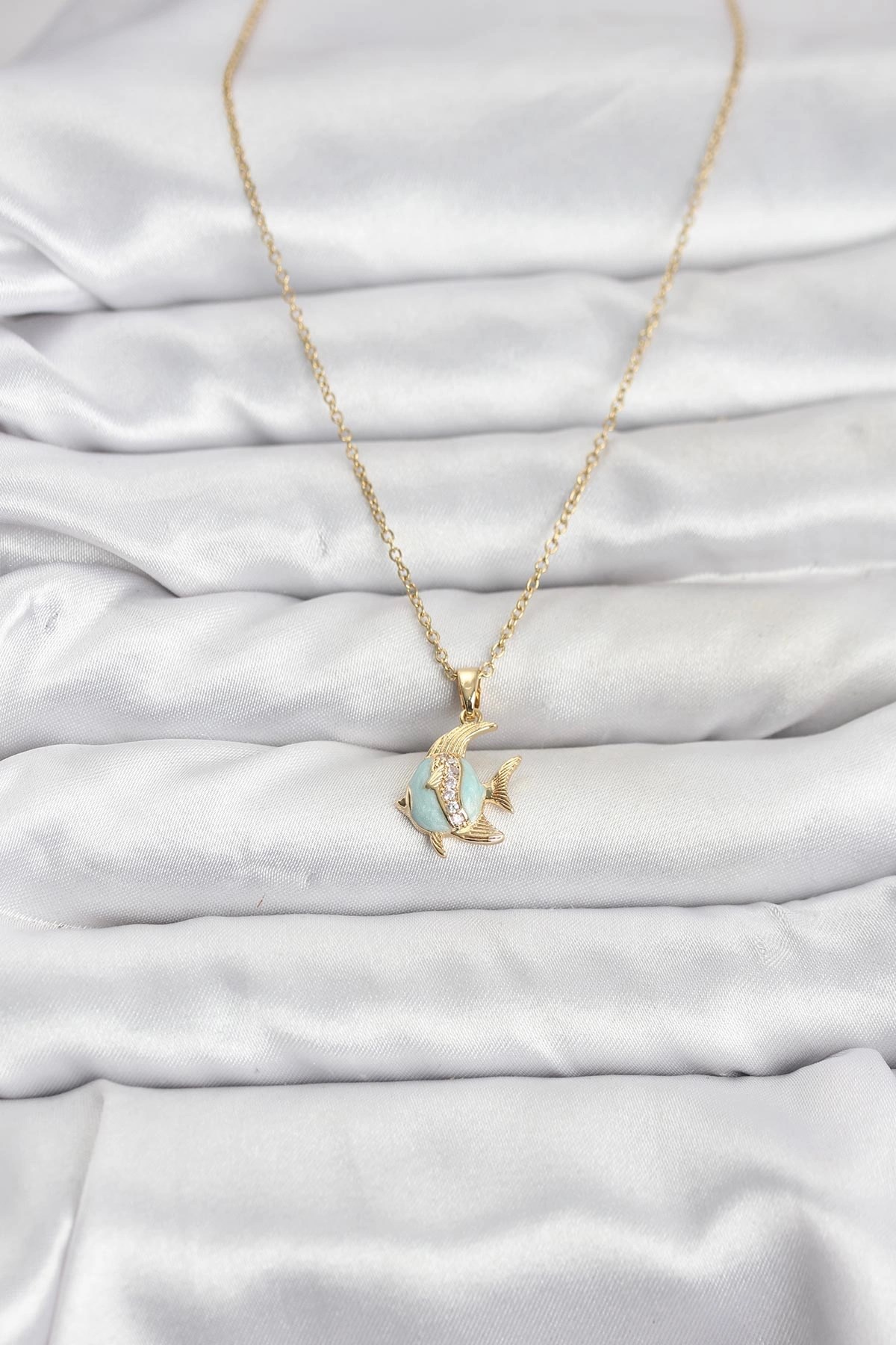 Mey İthalat® 316L Çelik Zincir Gold Renk Balık Model Zirkon Taşlı Kadın Kolye