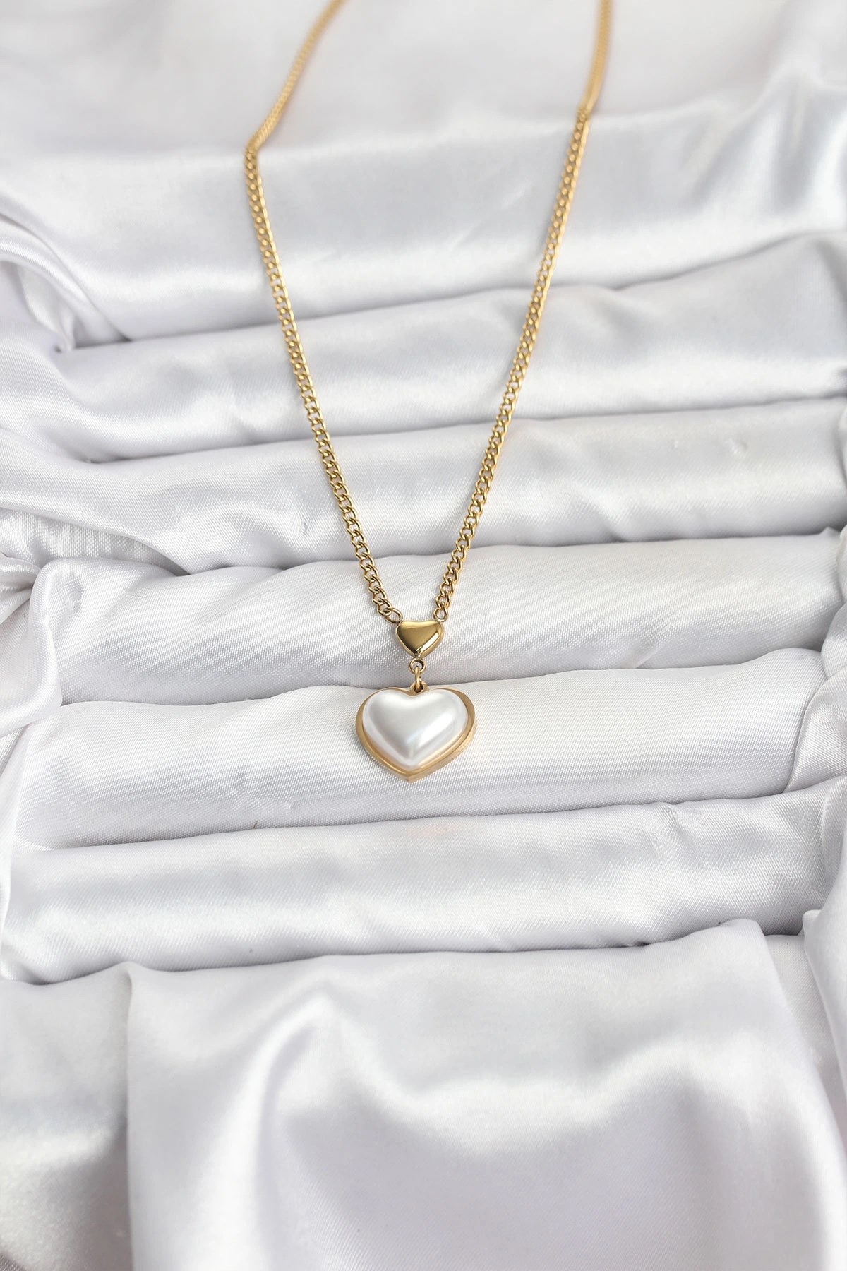 Mey İthalat® 316L Çelik Zincir Gold Renk Bombeli Kalp Model Kadın Kolye
